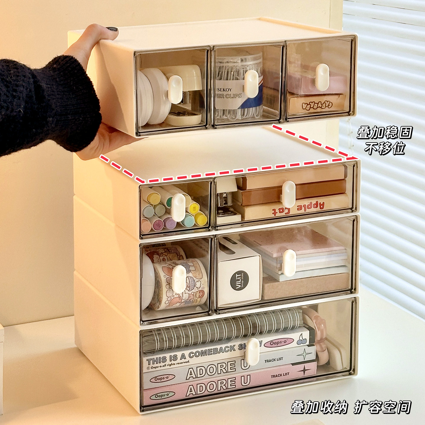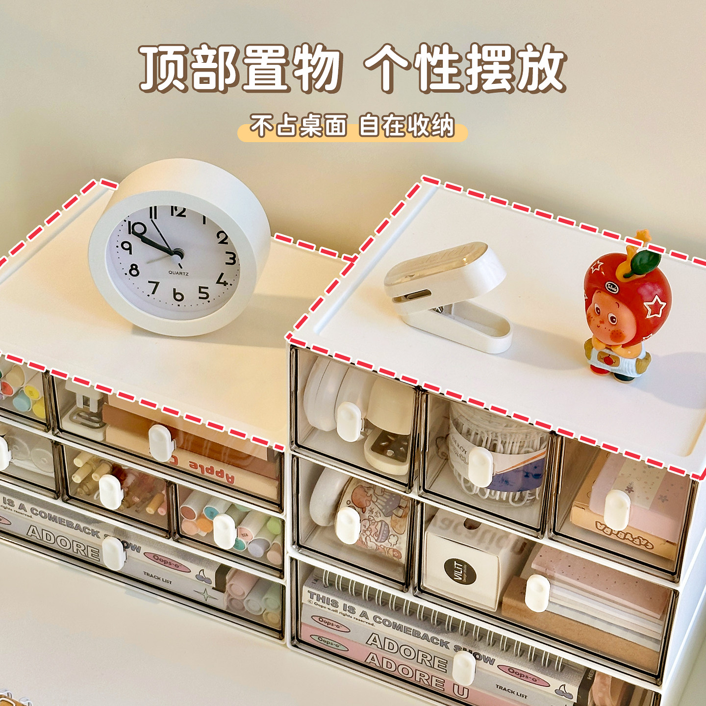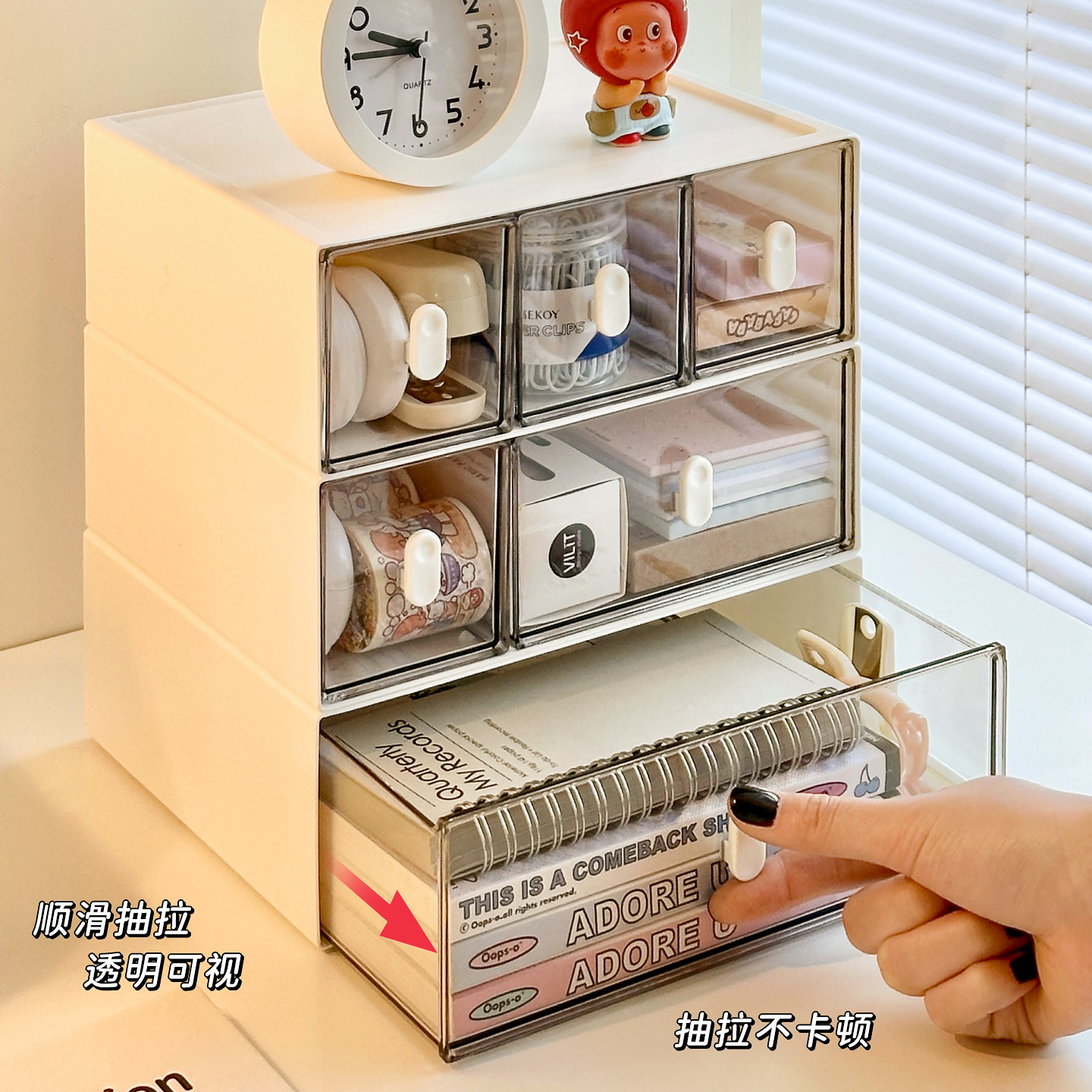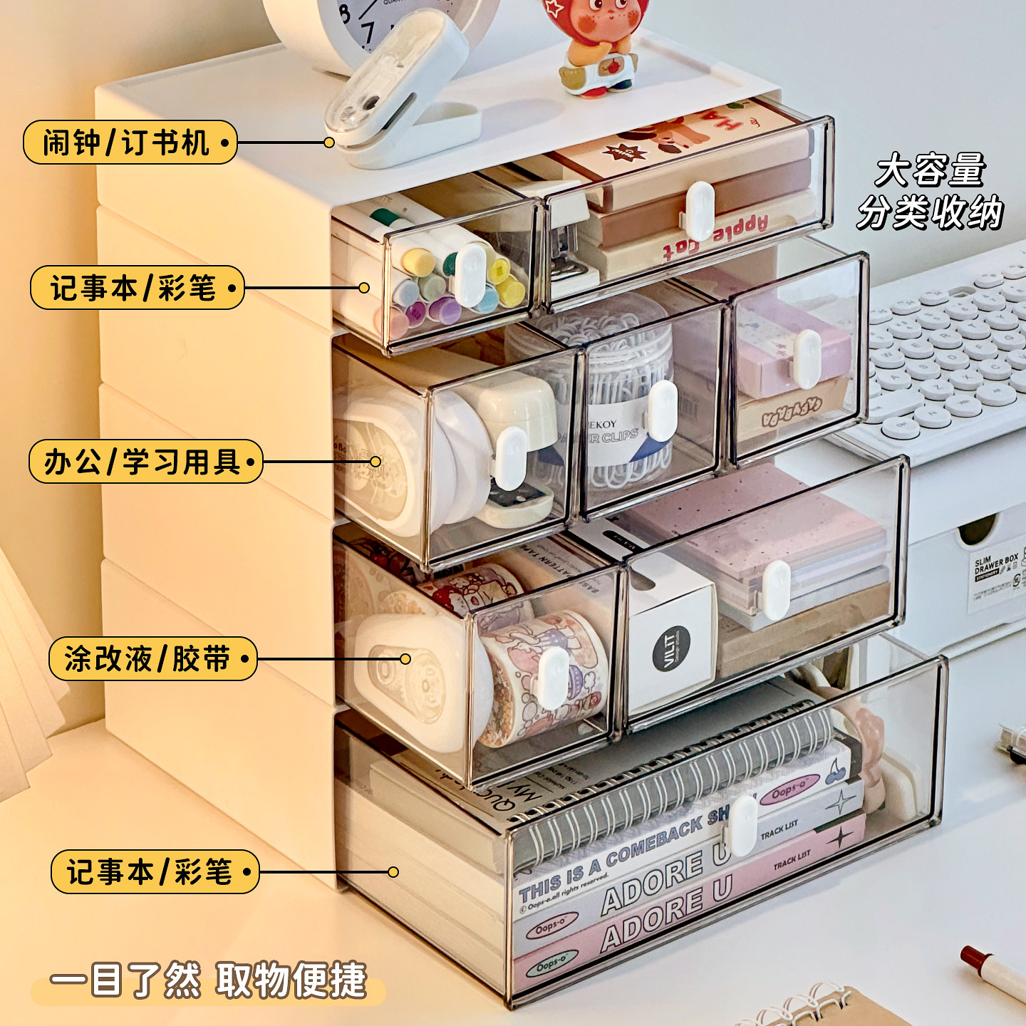 桌面收纳盒抽屉式书桌文具透明多层储物盒整理盒办公室工位置物架