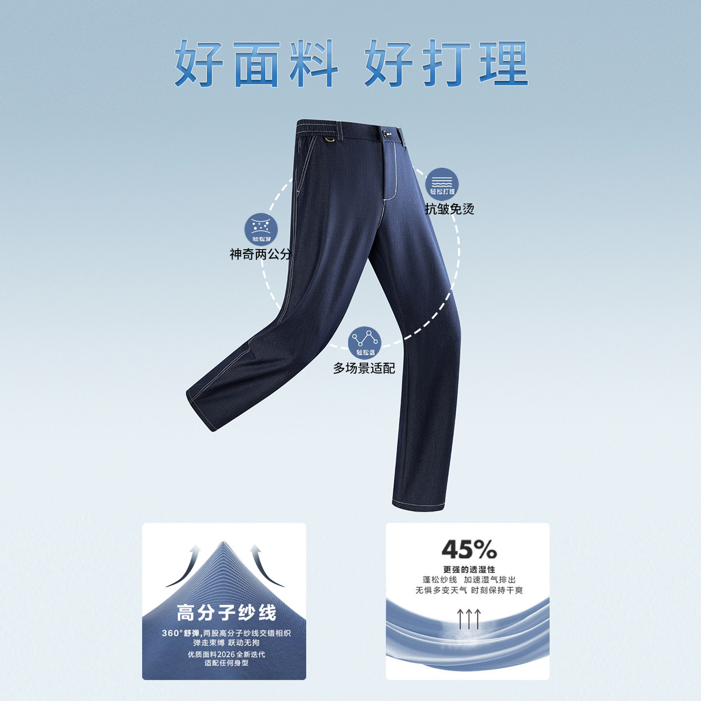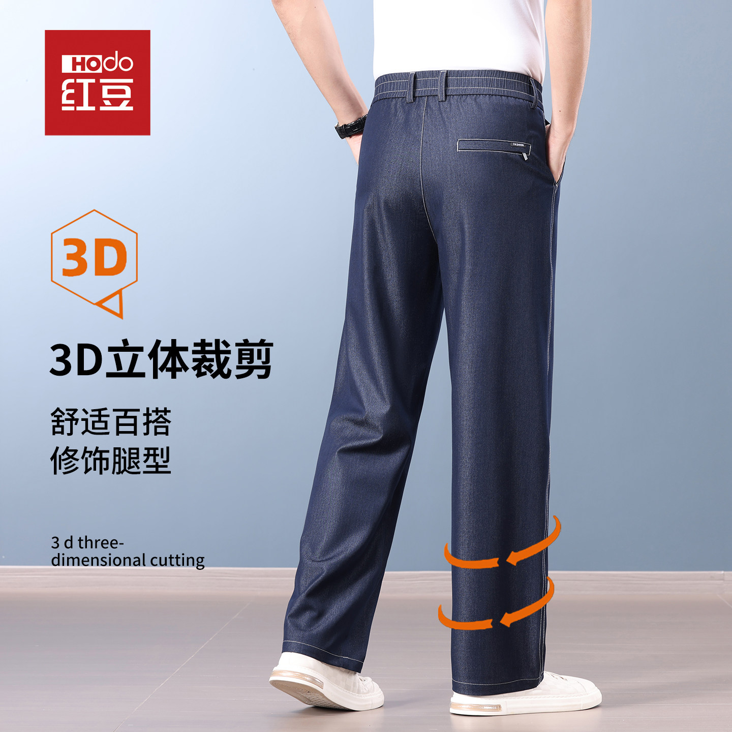 红豆冰丝牛仔裤男士春夏季薄款2026新款宽松直筒垂感中年凉感裤子