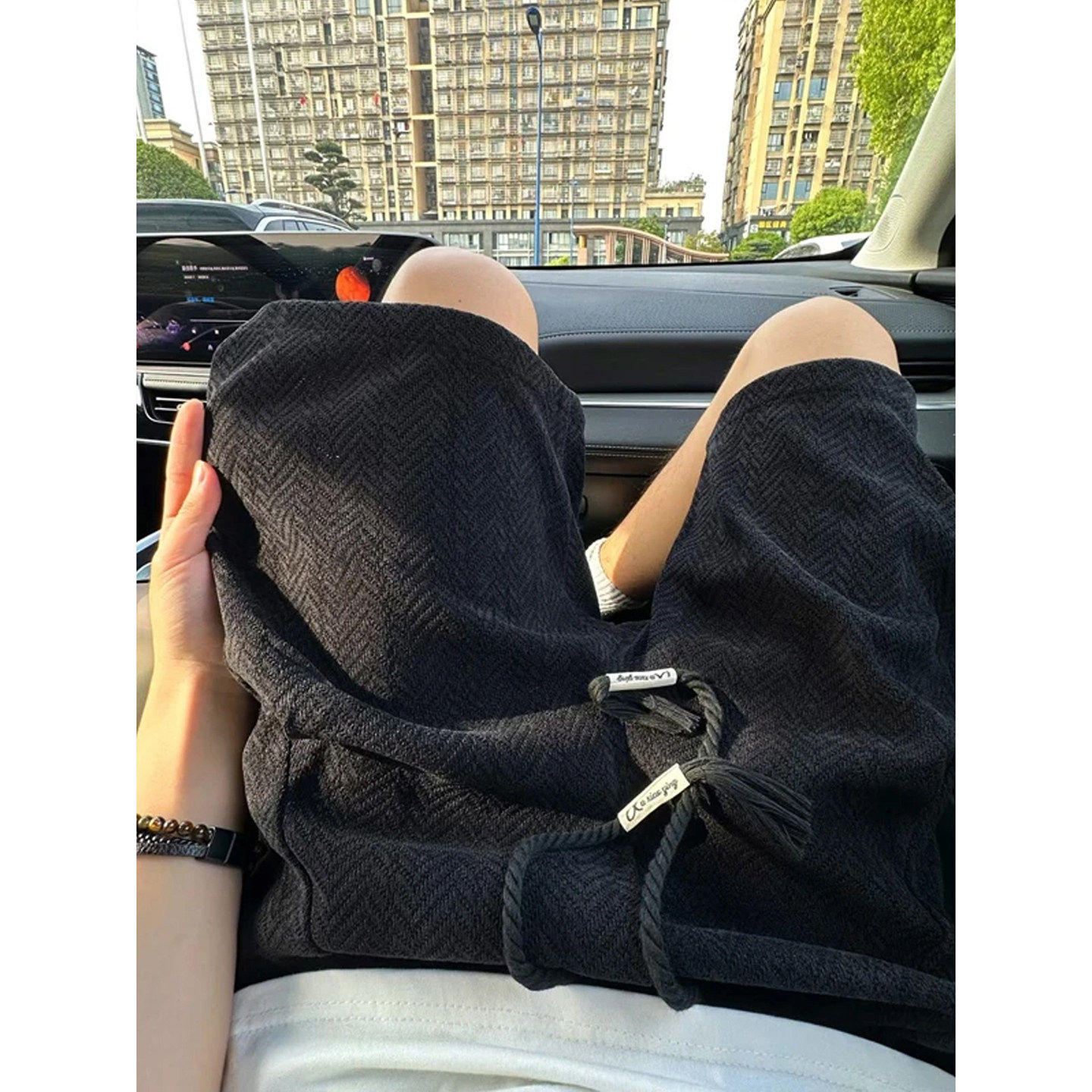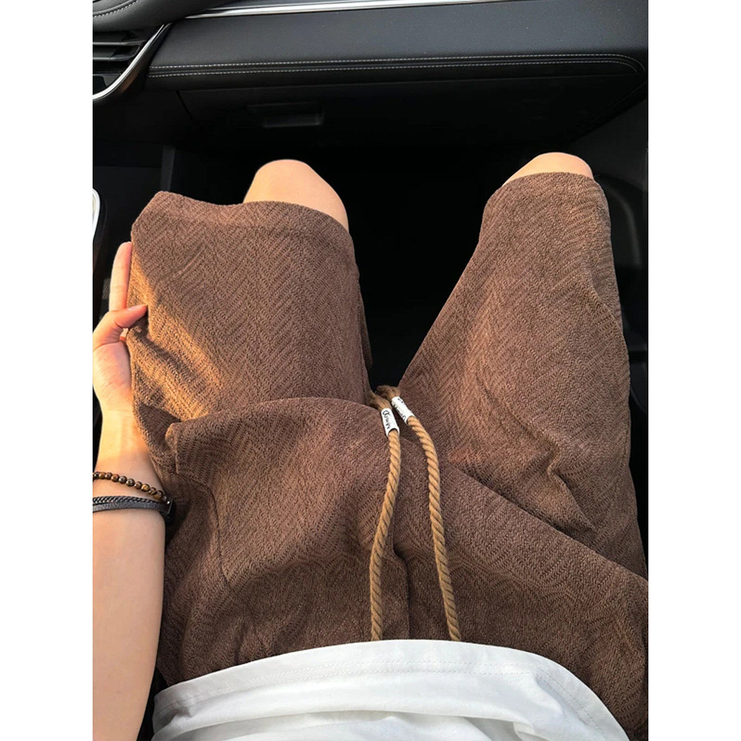 咖色麦穗纹针织短裤男款夏季美拉德褶皱裤子高级感工装运动五分裤
