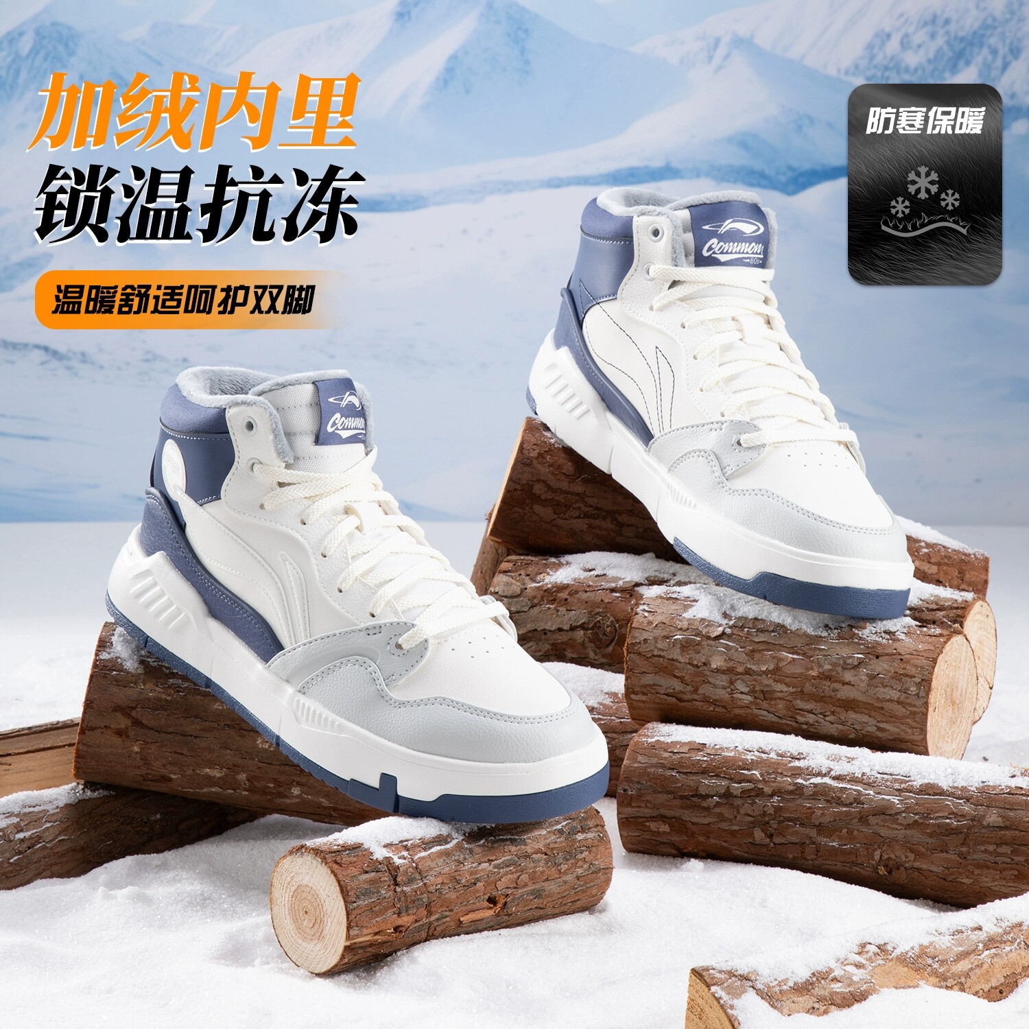 李宁鞋子男款加绒保暖棉鞋冬季皮面防风休闲运动鞋二棉鞋潮流鞋子