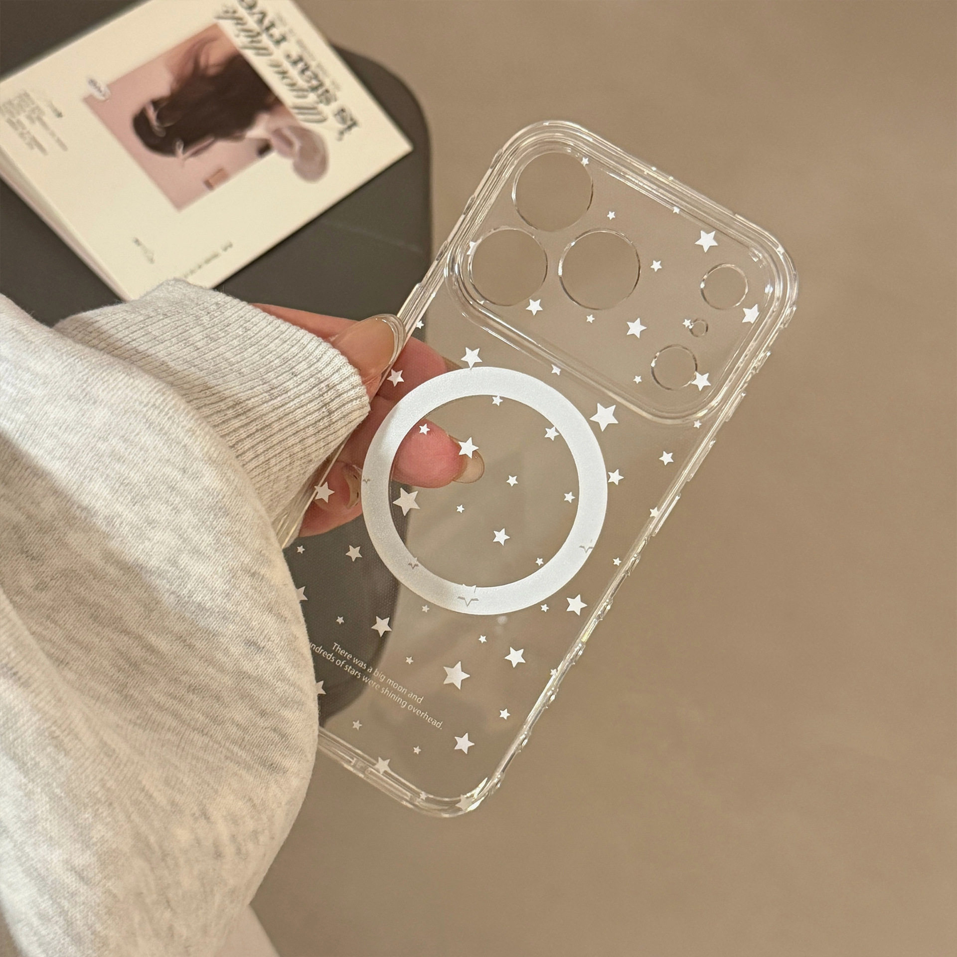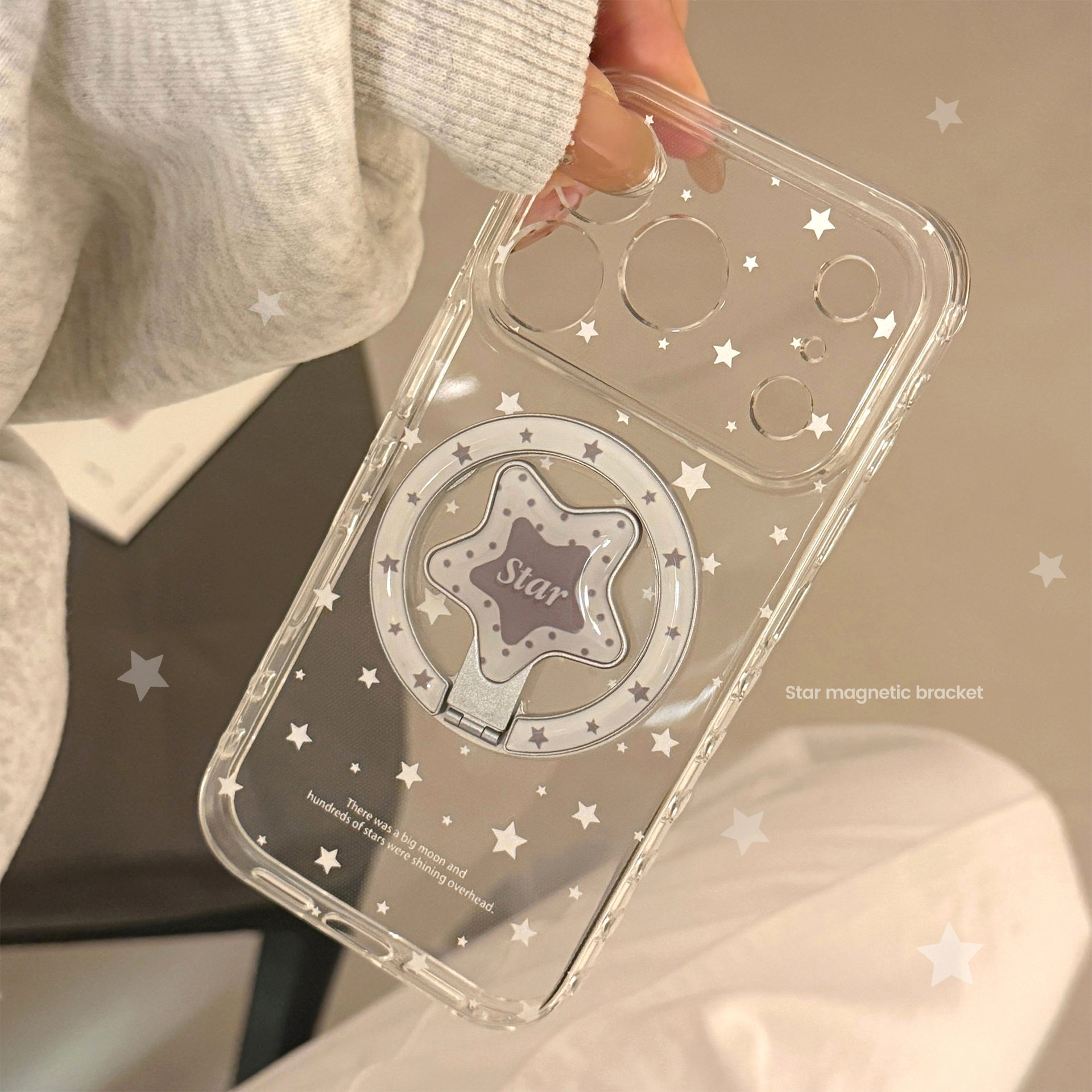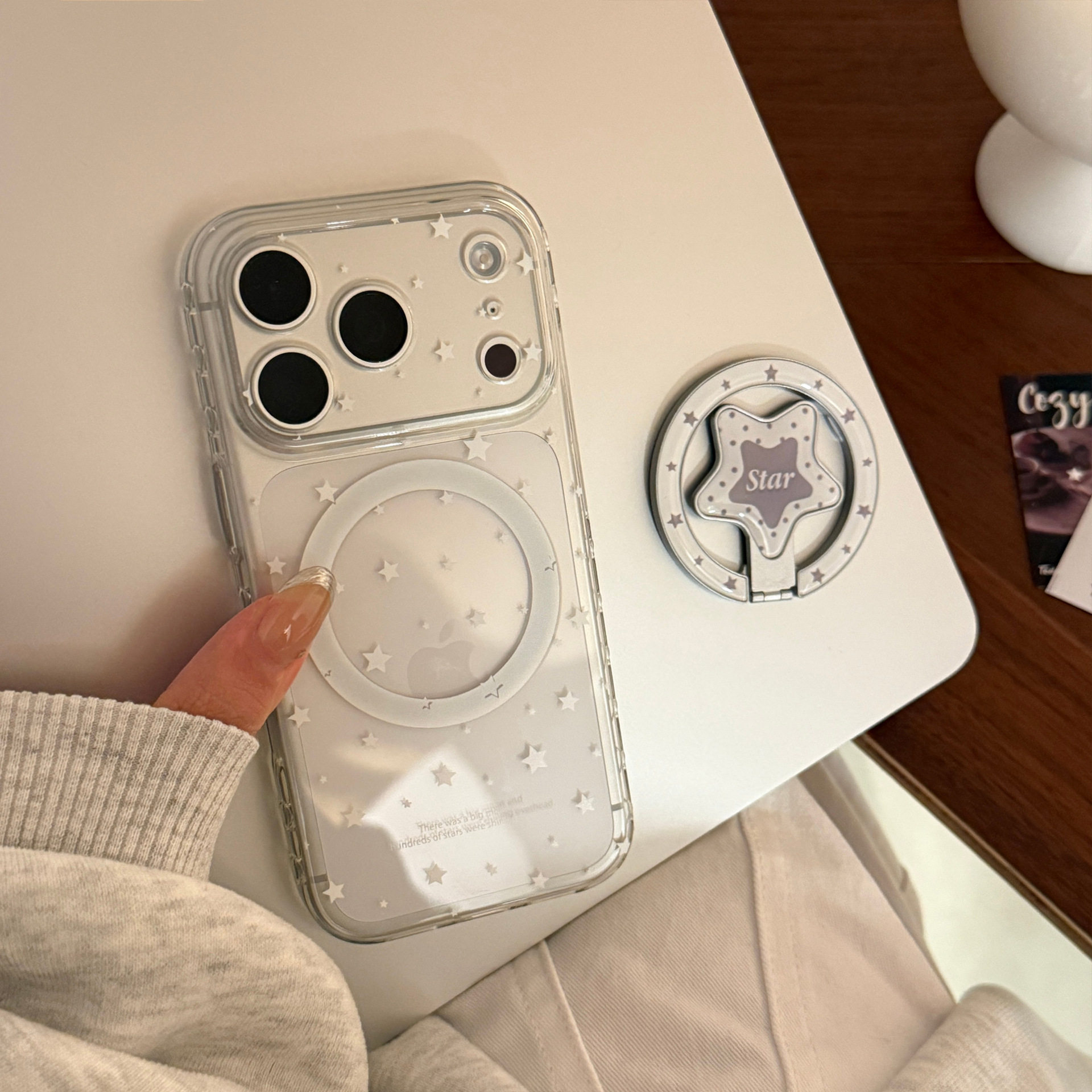 透明星星磁吸圈【可拆卸支架】适用苹果17女款手机壳带支架16promax新款15pro高级感2026可爱iphone13女生14