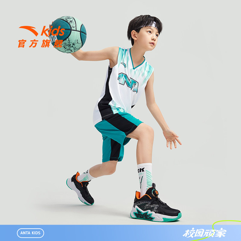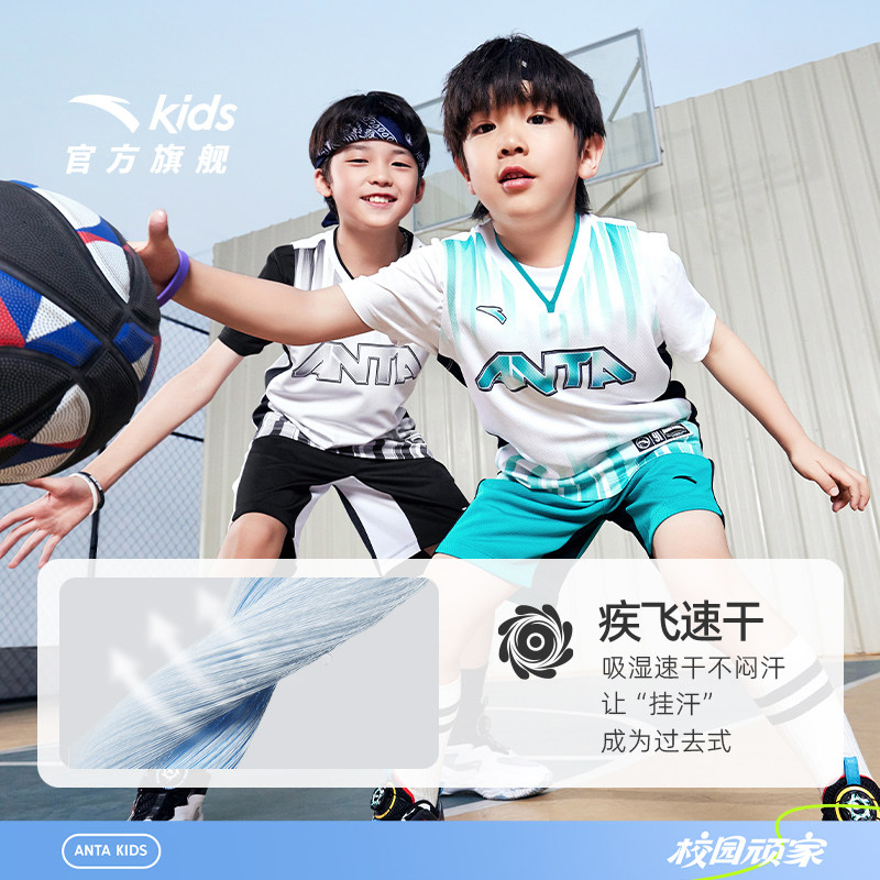 安踏儿童装男童套装夏款2026篮球服比赛套装速干透气背心短裤两件