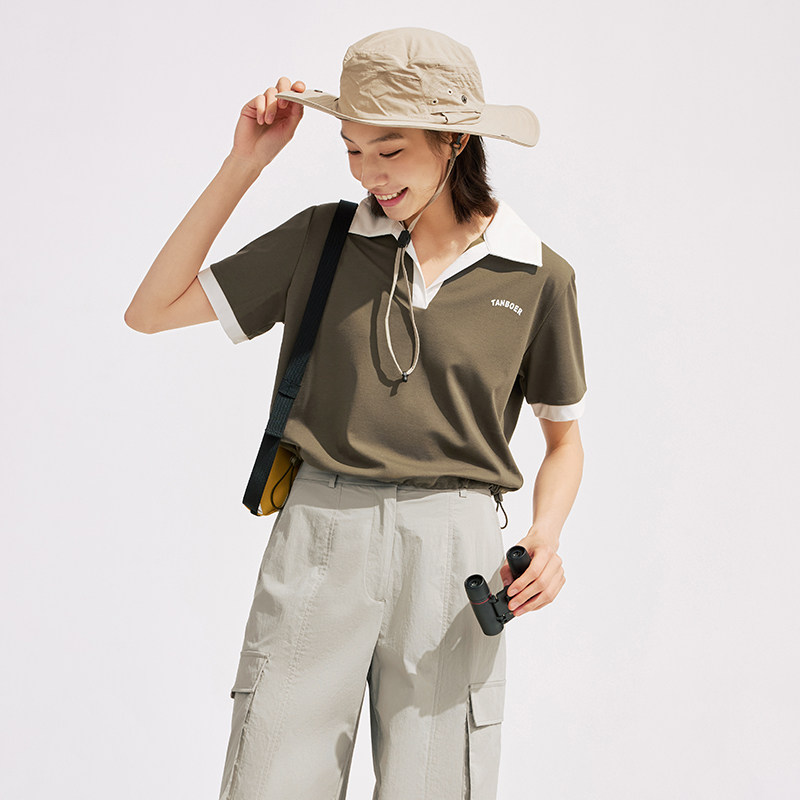 坦博尔户外polo衫V领短袖夏季新款凉感透气潮流小个子上衣T恤