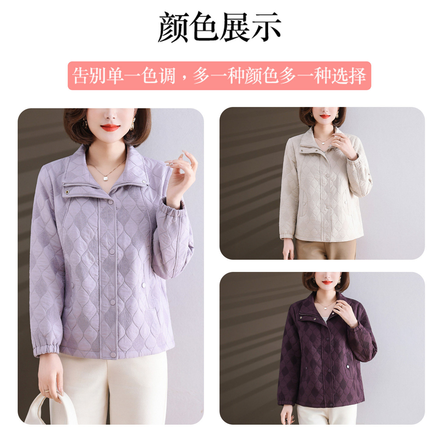 妈妈春装外套2026新款翻领短款休闲夹克中老年女时尚洋气上衣
