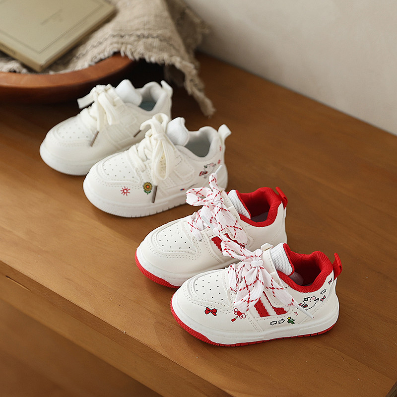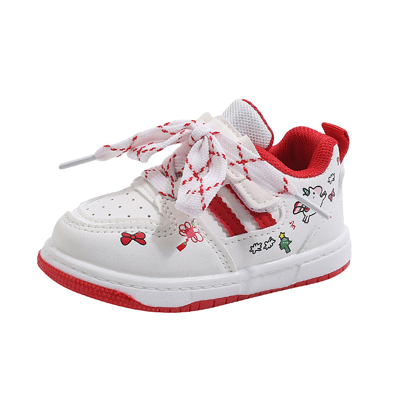 宝宝学步鞋春秋新款0-1—3岁防滑软底男童婴幼儿板鞋红色女童鞋子