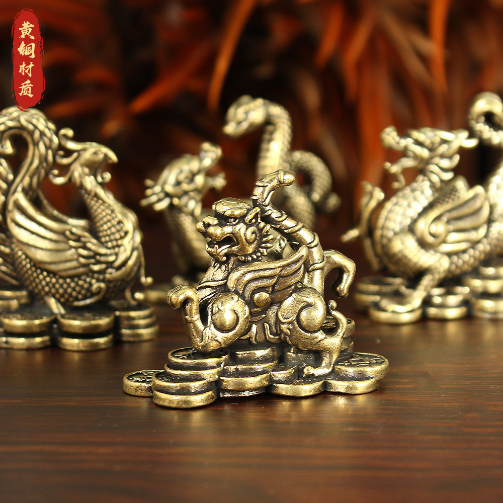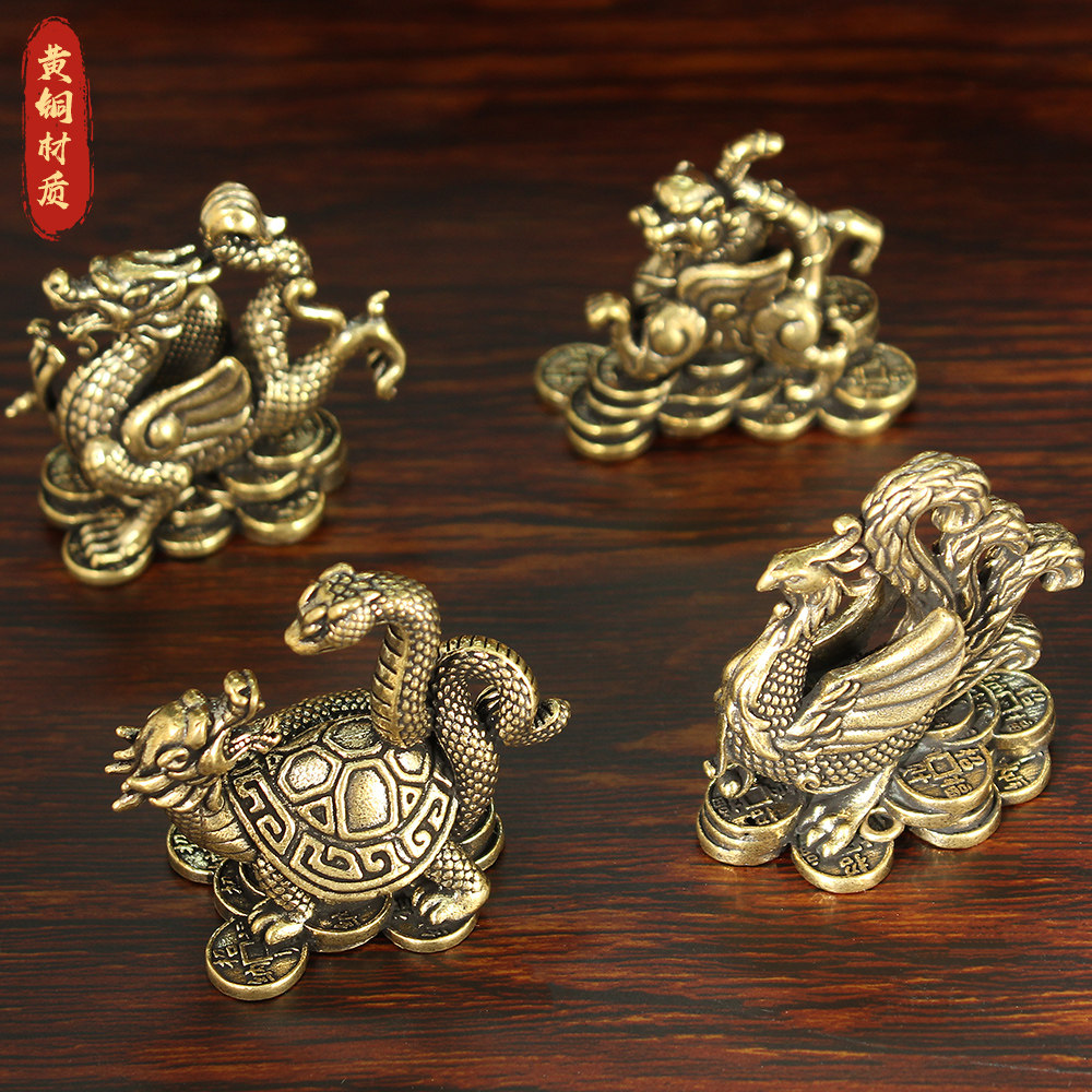 新款四大神兽摆件黄铜青龙白虎朱雀玄武客厅办公室茶桌工艺品装饰