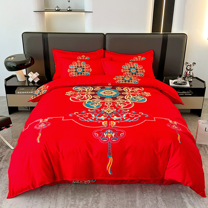 纯棉大红色婚庆床单被套四件套加厚全棉磨毛结婚喜被婚房床上用品