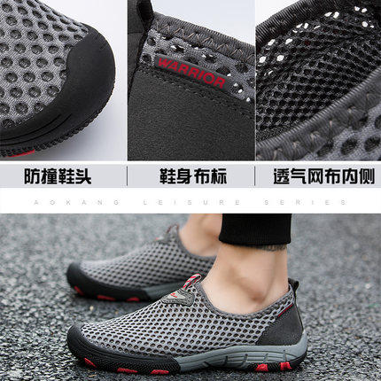 回力网鞋男款夏季中老年父亲低帮透气网面鞋子一脚蹬爸爸休闲运动