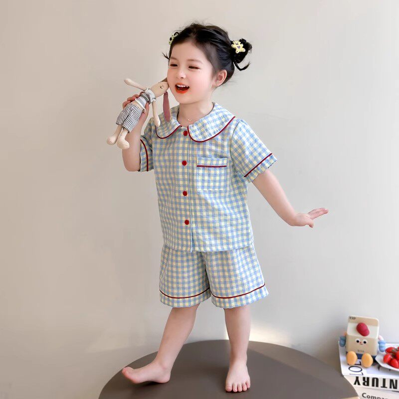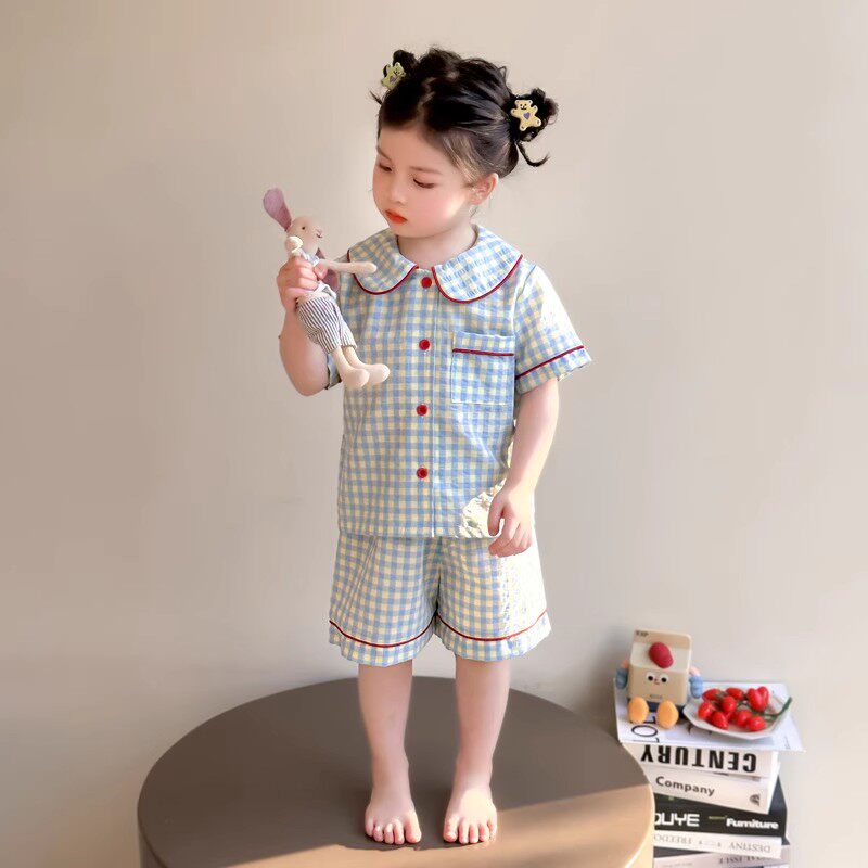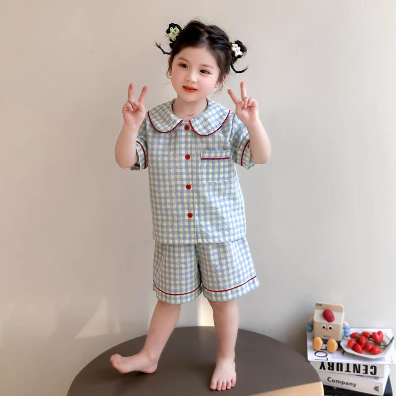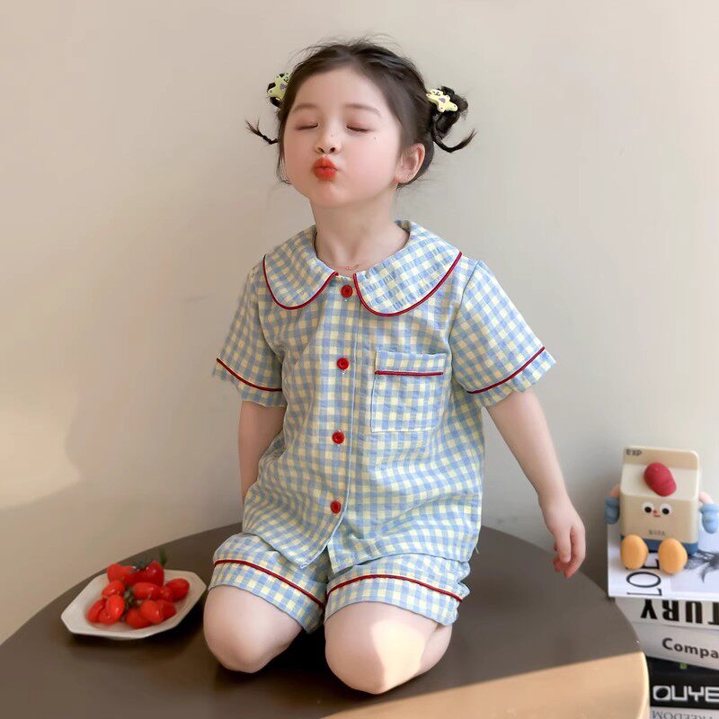 女童睡衣夏季2026新款薄款娃娃领短袖小女孩初中生套装儿童家居服