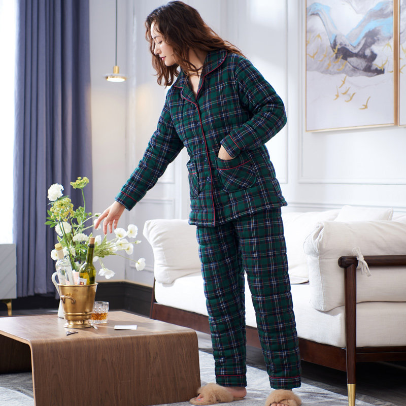 311线报网描述:全棉夹棉格子经典款家居服保暖睡衣