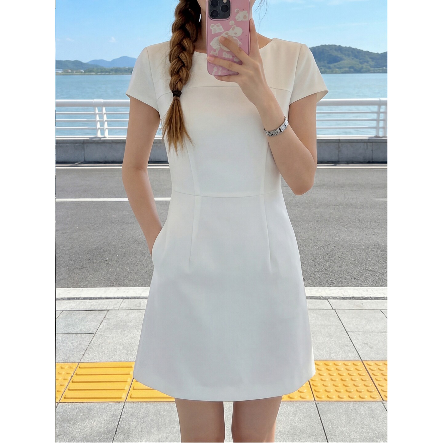 奢华2026夏季新款韩版超好看小个子穿搭显瘦修身白色短袖连衣裙女
