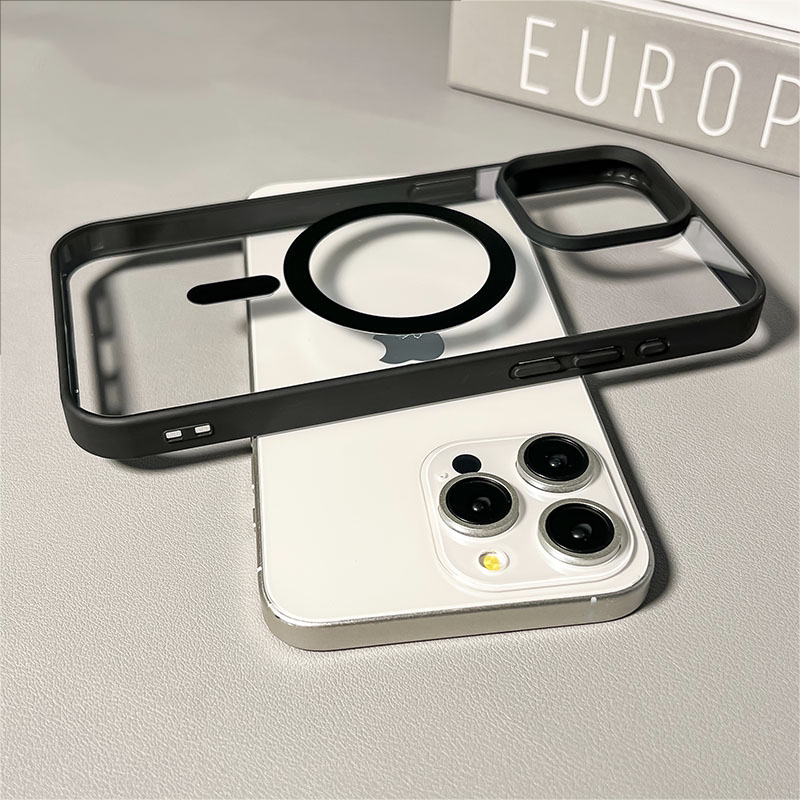 不发黄透明磁吸苹果15promax手机壳16p适用iPhone13pro新款超薄磨砂黑边14plus防摔11高级感12硅胶xr保护硬壳