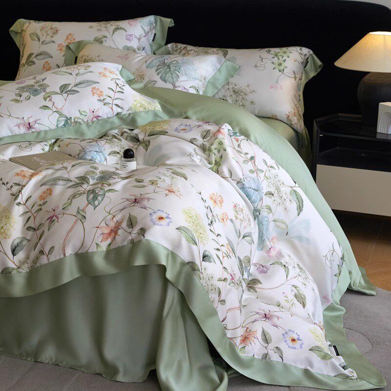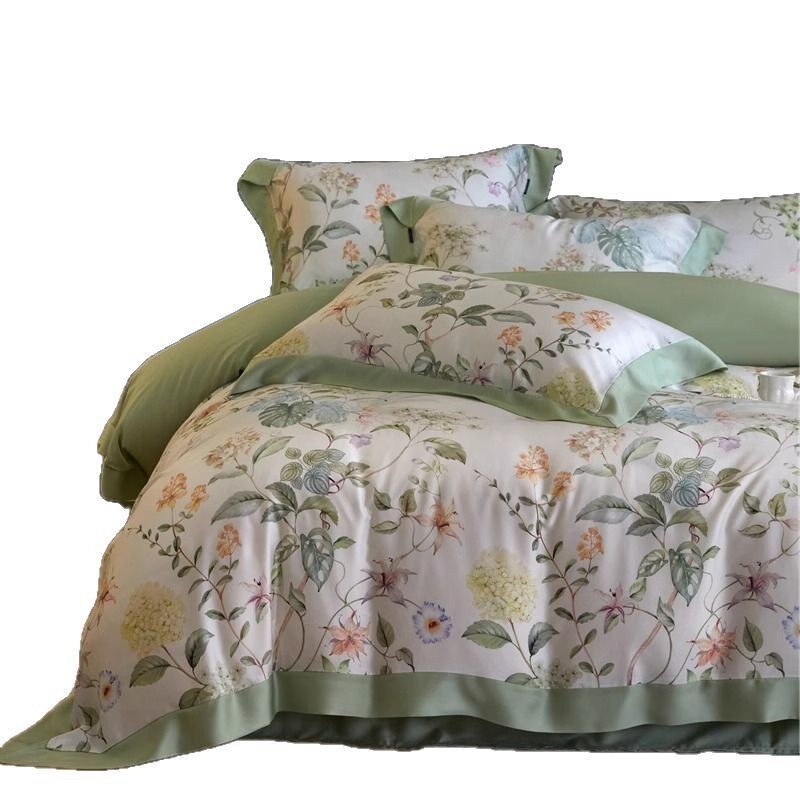 夏季高端美式田园100支兰精天丝四件套凉感冰丝绿色被套床上用品