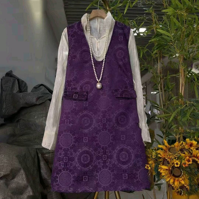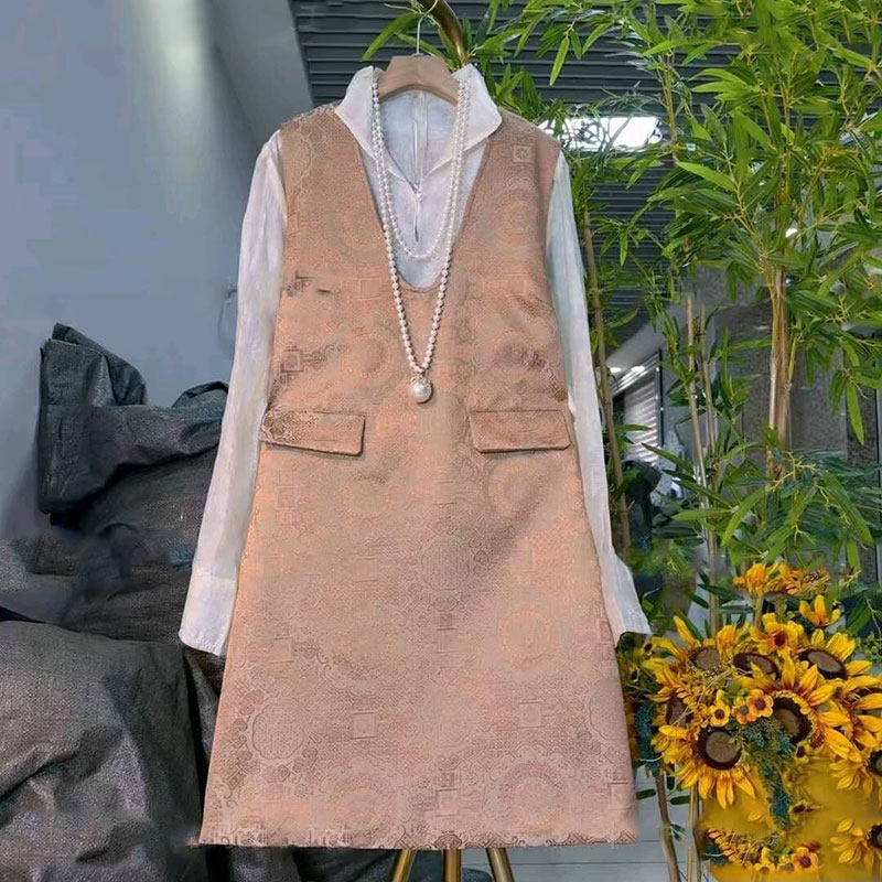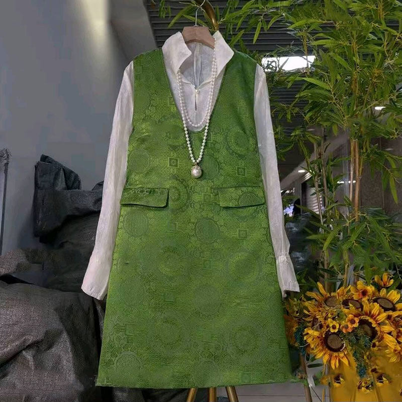 2026春季新款胖mm大码女装新中式国风提花马甲裙百搭打底衫两件套