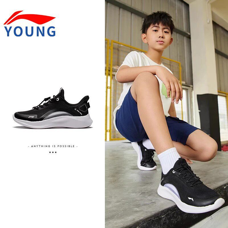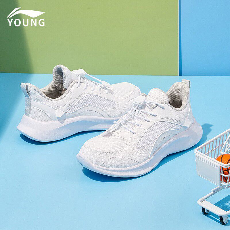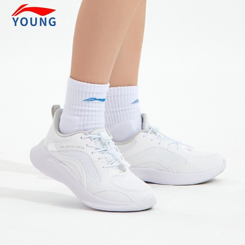 李宁时尚百搭正品儿童跑步鞋2026春季新款童鞋轻便透气白色运动鞋