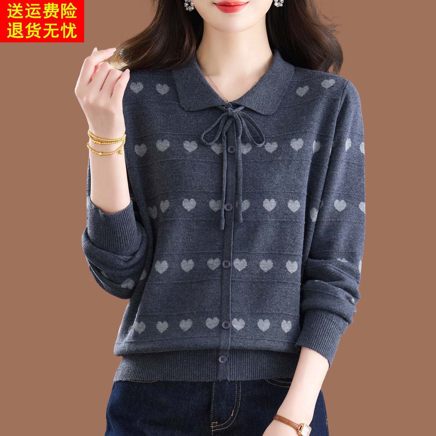 桑蚕丝长袖t恤女春款2026新款妈妈装polo领打底上衣高端针织小衫