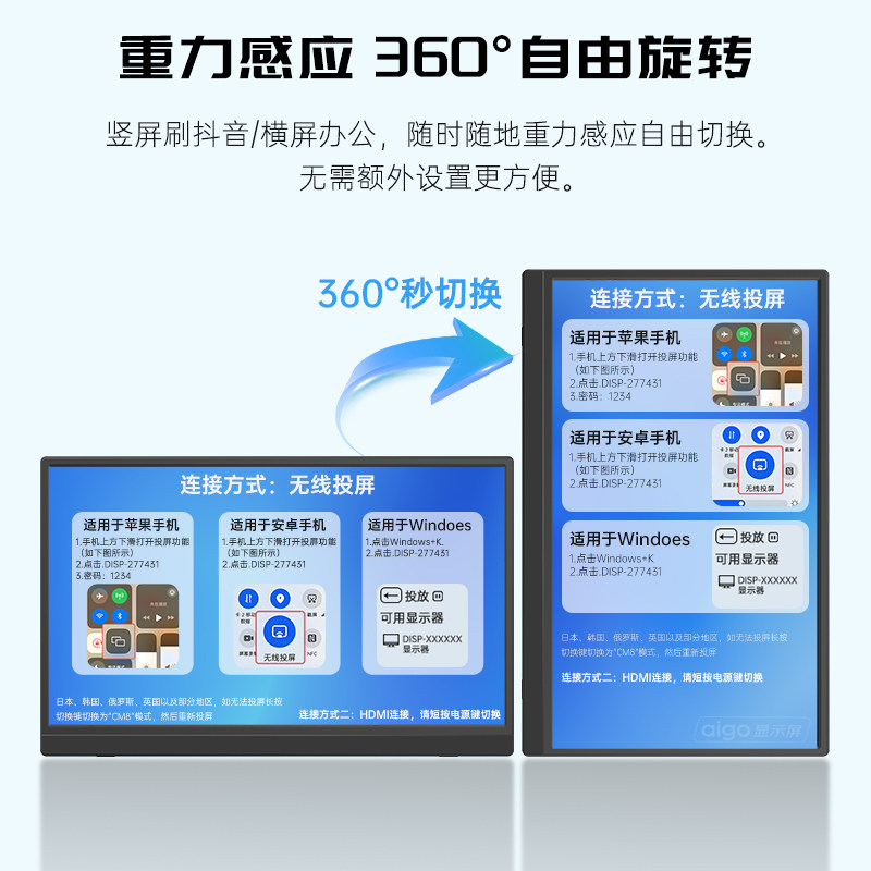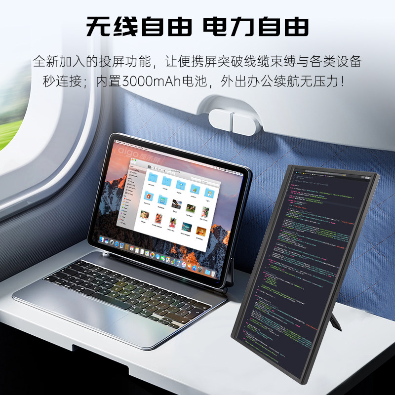 爱国者15.6英寸便携式显示器无线投屏内置电池电脑副屏手机投屏