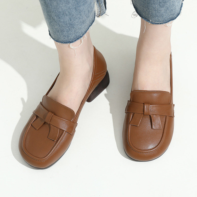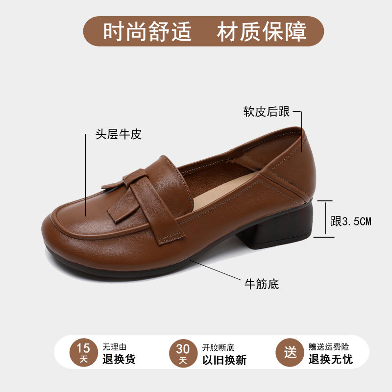 软皮软底乐福鞋女款春季小皮鞋2026新款舒适妈妈单鞋真皮大码女鞋