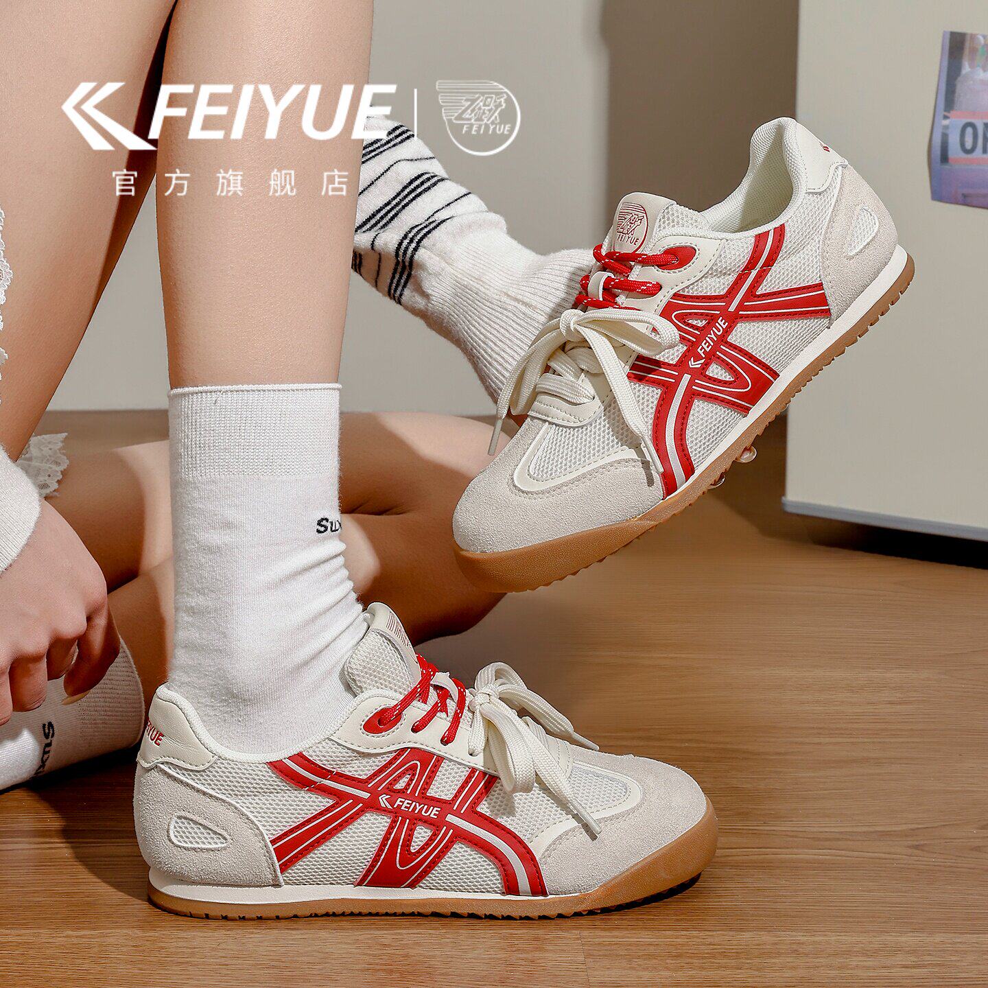 feiyue/飞跃女鞋网面鞋2026年夏季新款透气小白鞋轻便软底德训鞋