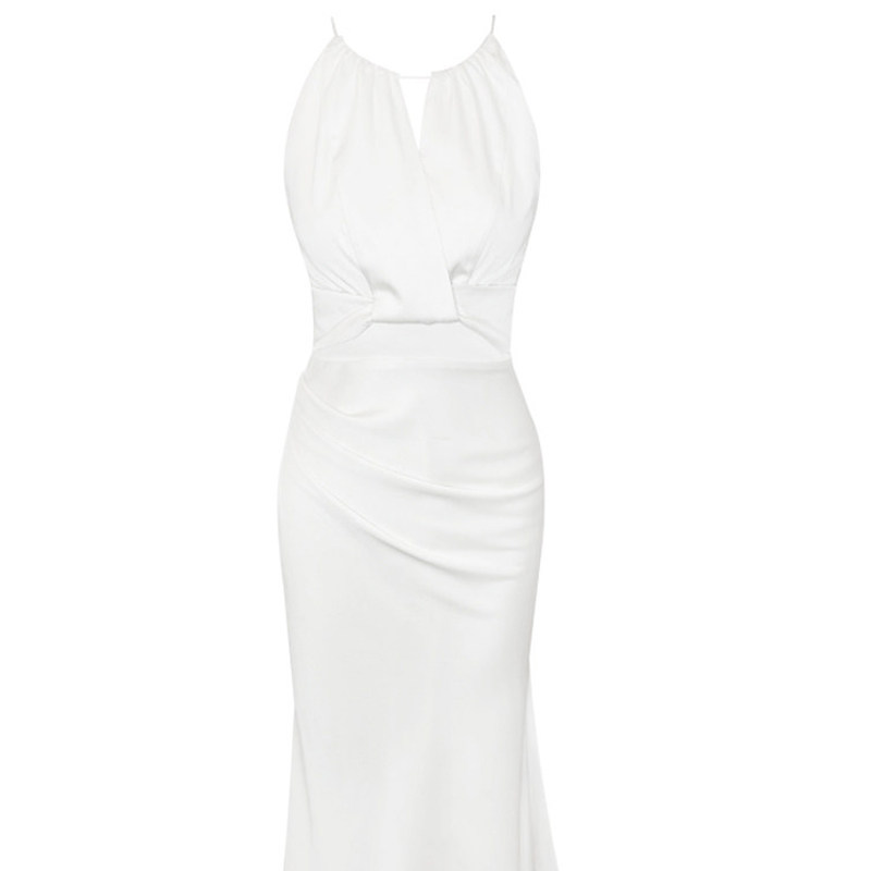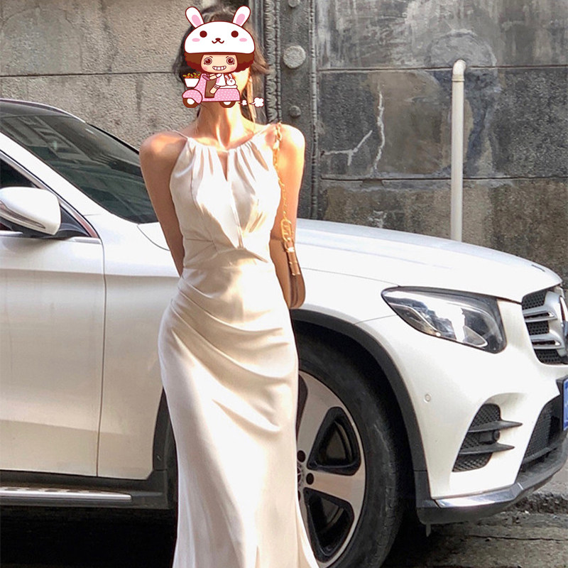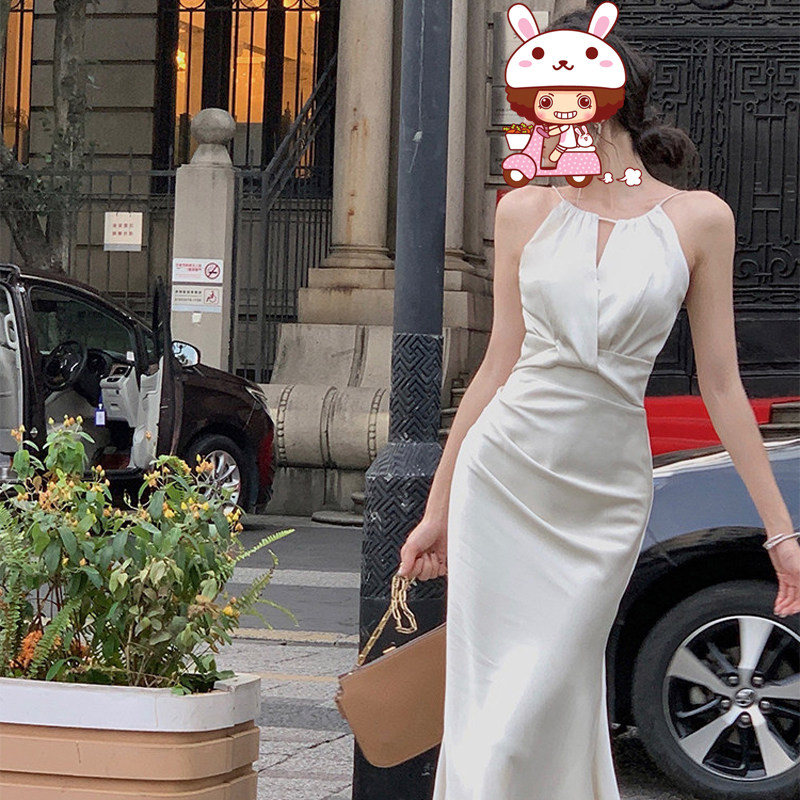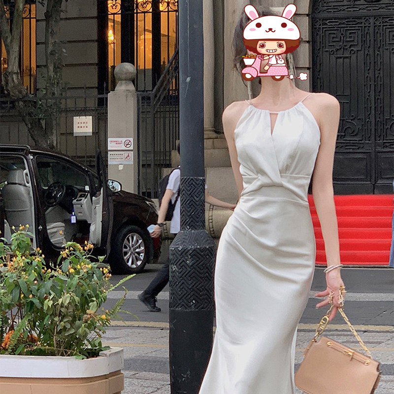 一从刻时【物造神】白色挂脖吊带连衣裙女夏缎面鱼尾高级感长裙子