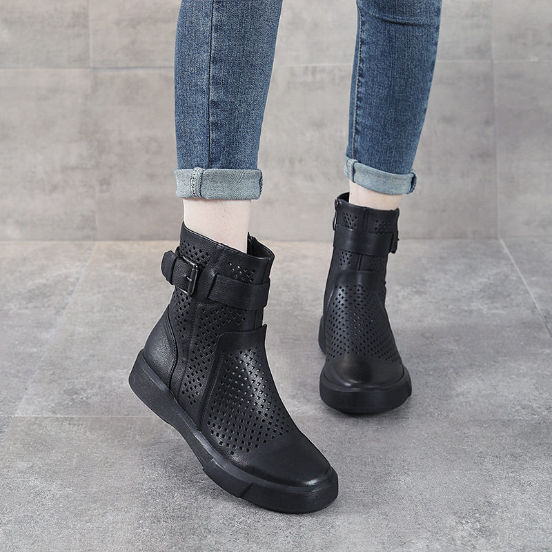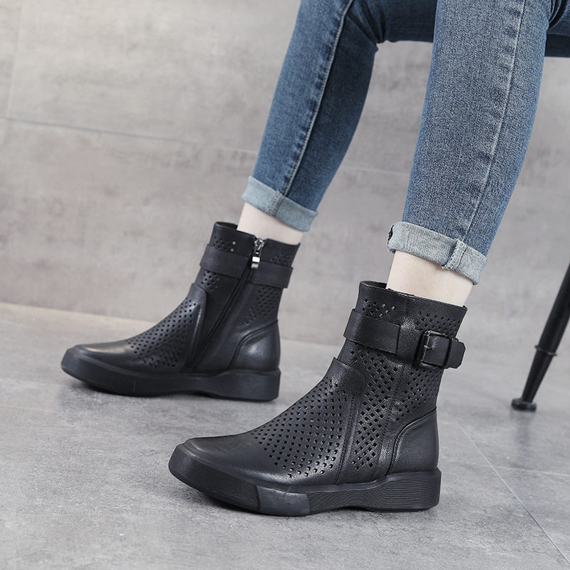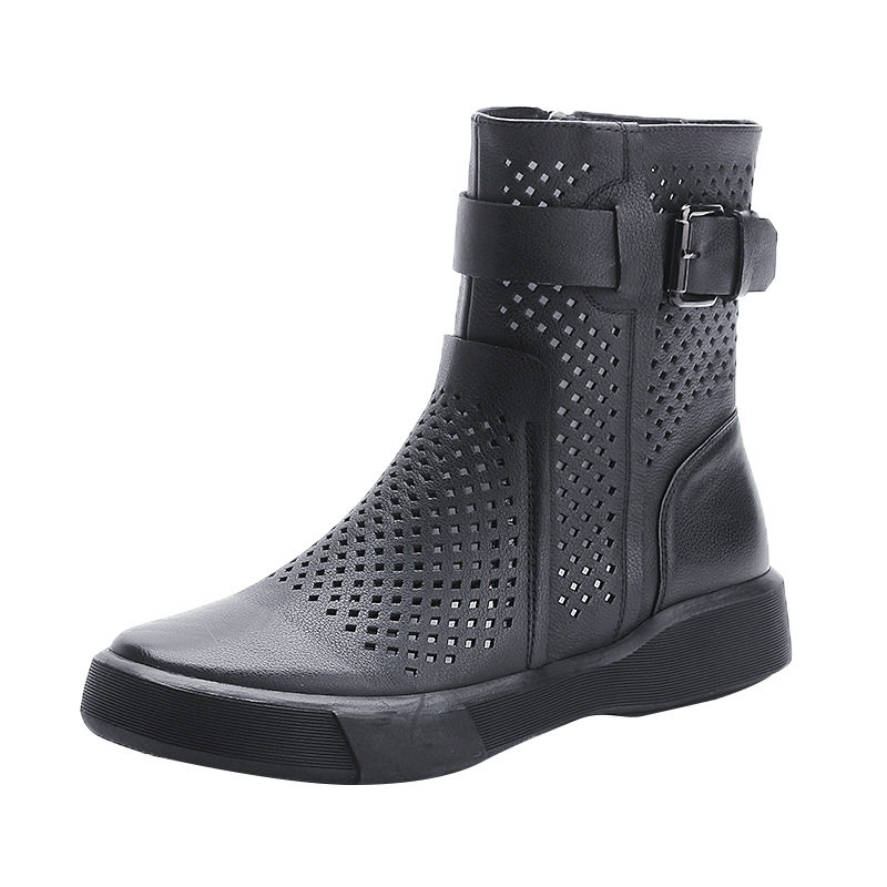 真皮马丁靴女2025春夏季新款镂空凉靴头层牛皮镂空靴厚底白色