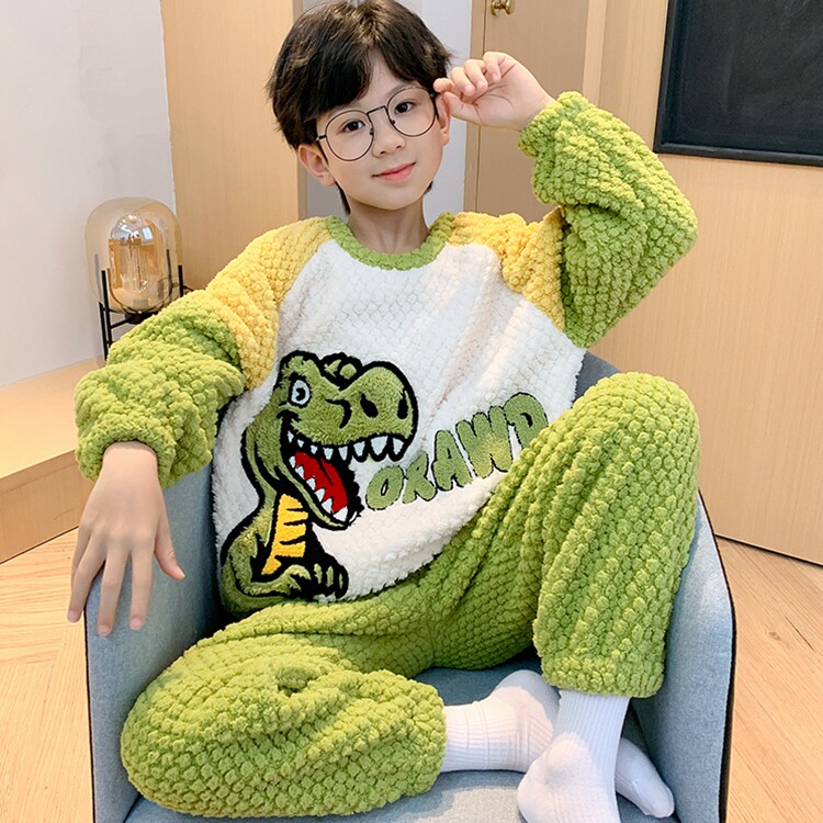 秋冬季珊瑚绒加绒加厚男童儿童睡衣中大童卡通酷帅男孩家居服套装