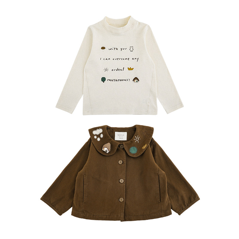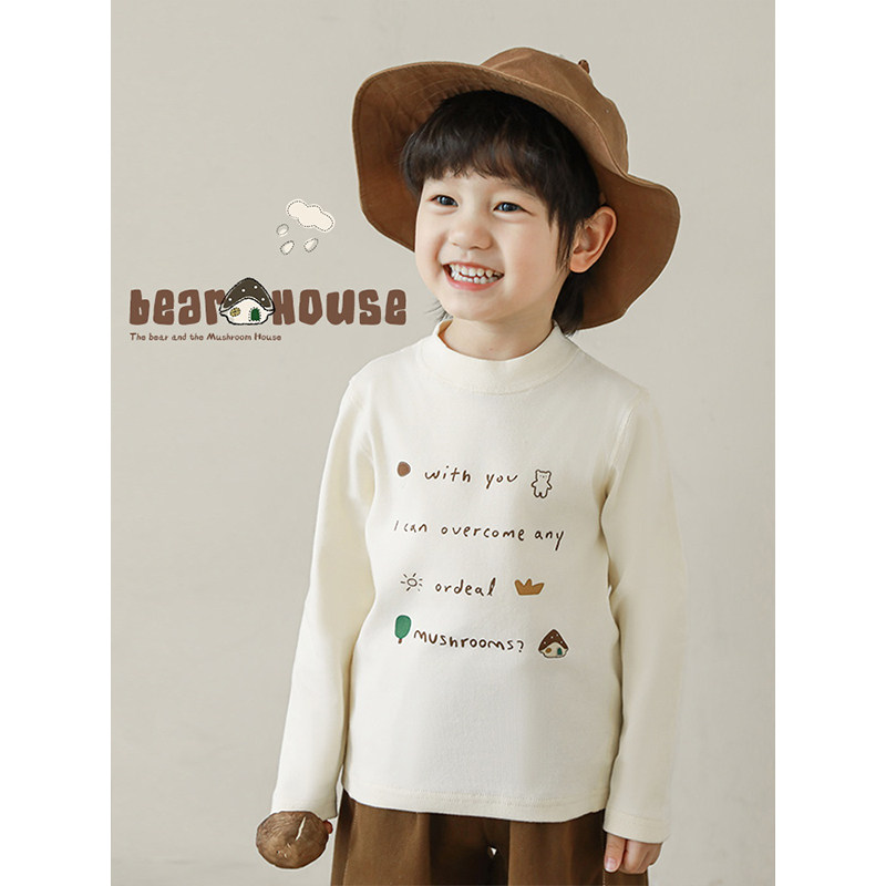 幼悠男童2026新款长袖字母印花t恤蘑菇翻领外套时尚儿童秋装潮