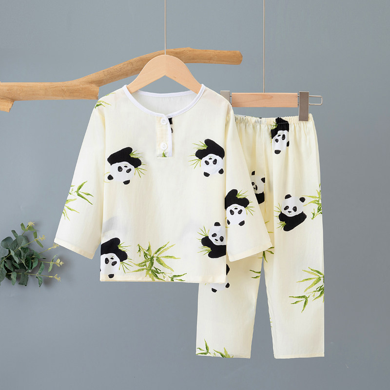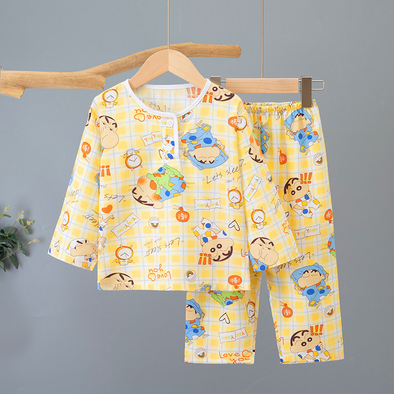 女孩儿童棉绸睡衣夏季薄款长袖家居服女童男童宝宝绵绸空调服套装