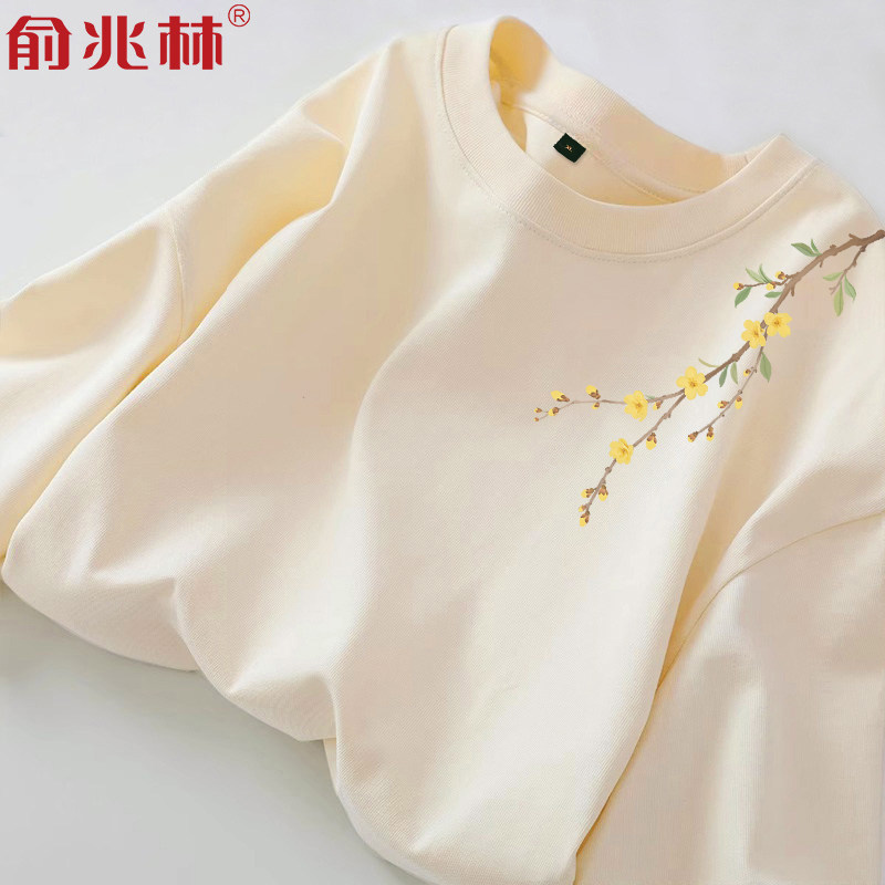 2025秋季新款设计感风铃银杏叶纯棉长袖t恤男女款青少年宽松上衣