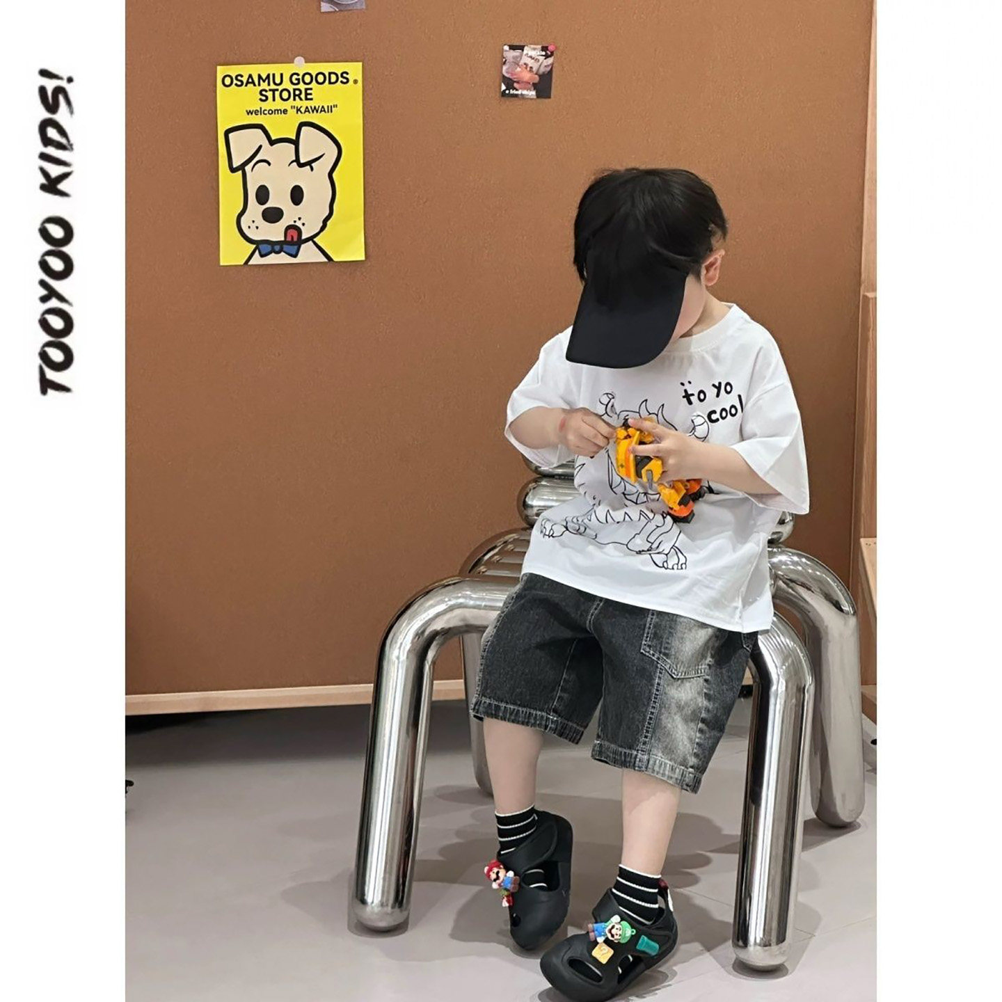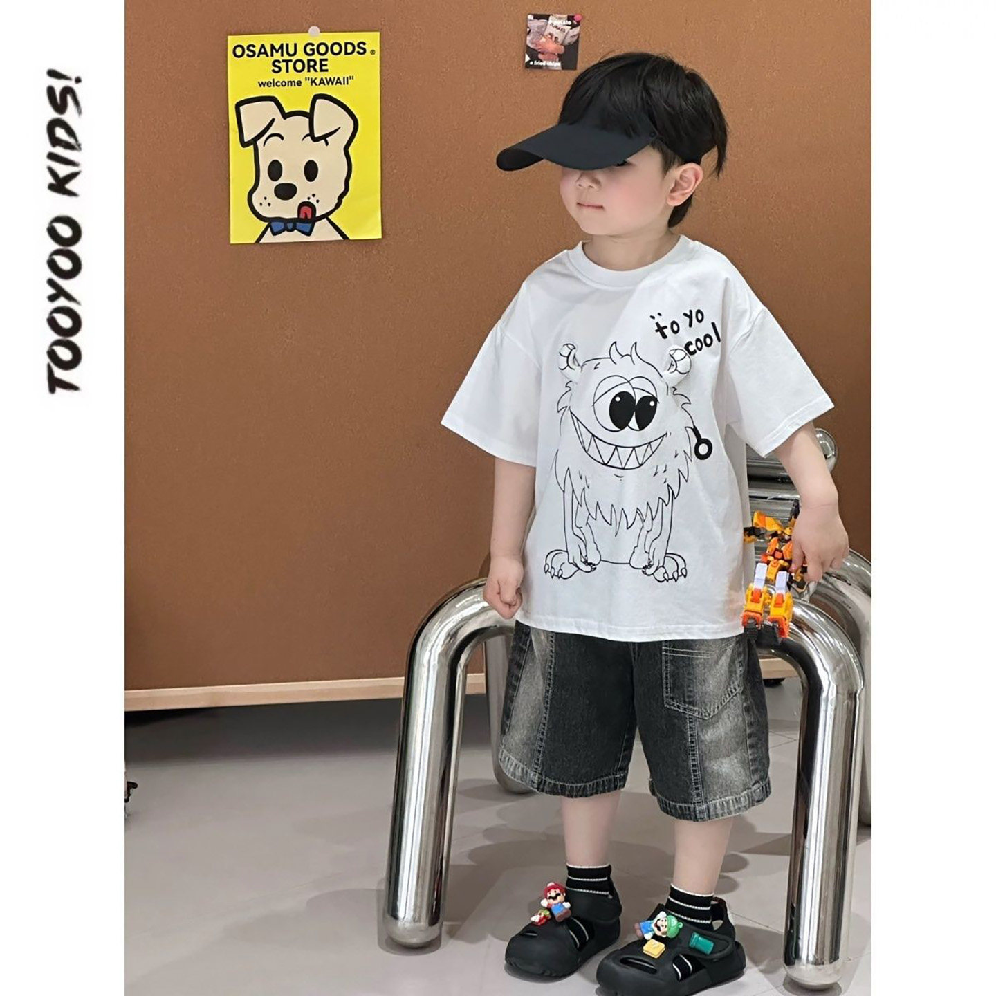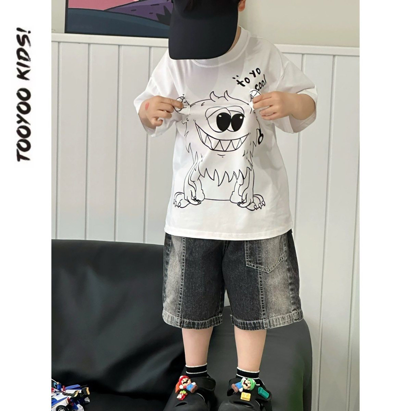 男童夏套装2026新款韩版儿童小怪兽短袖t恤帅气时髦短裤两件套潮