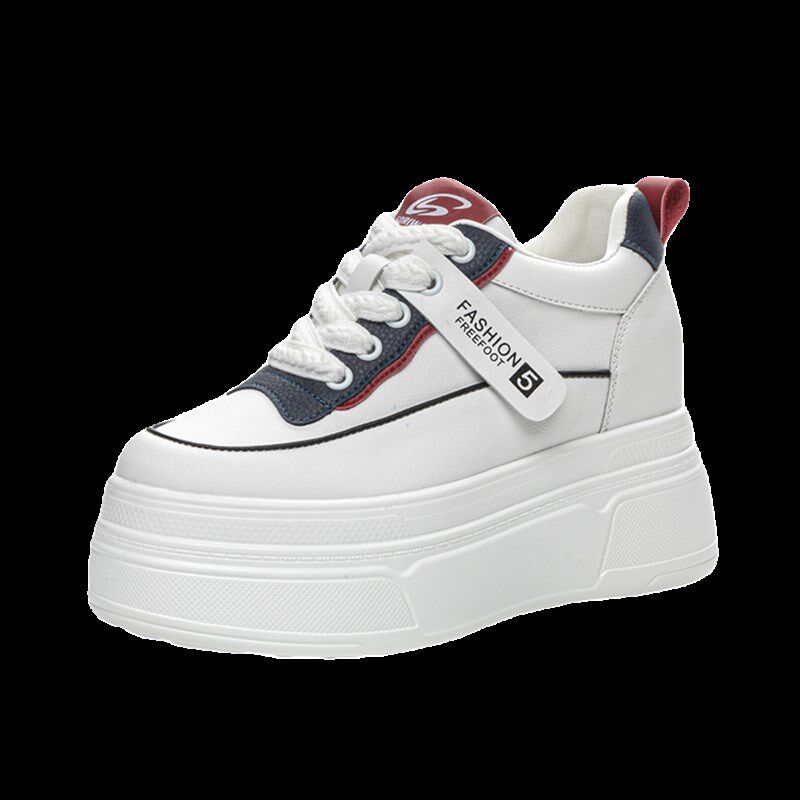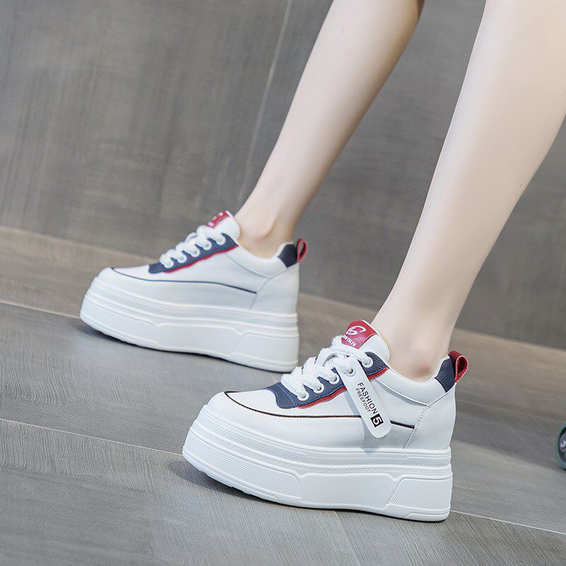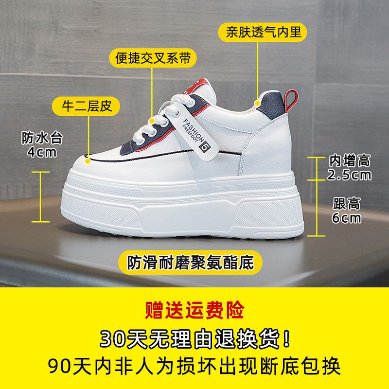 2024新款春款小个子内增高女鞋8cm真J皮小白鞋女休闲厚底松糕白鞋