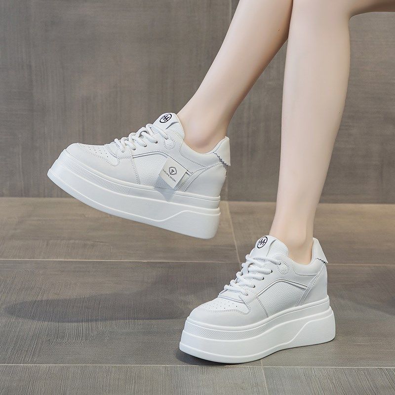 2024新款春款小个子内增高女鞋8cm真皮板鞋休S闲运动厚底小白鞋子