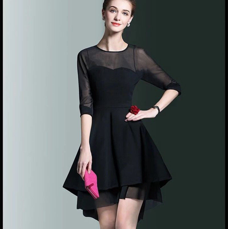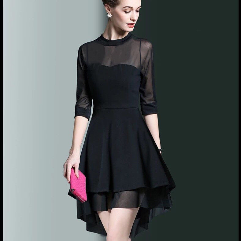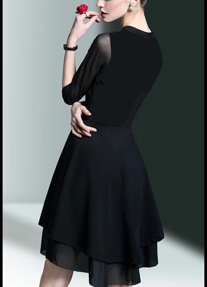 初夏新款女成人拉丁舞蹈连衣裙网纱拼接燕尾不规则大码显瘦演出服