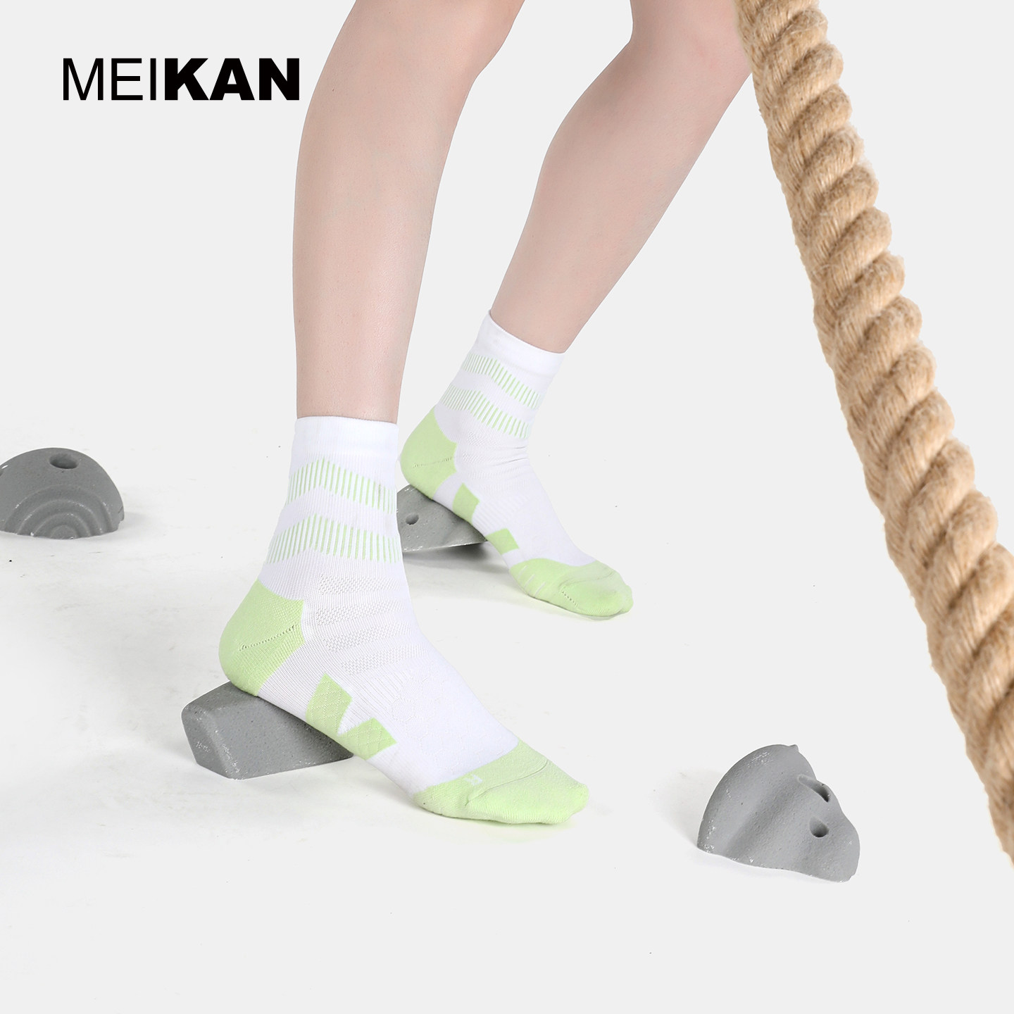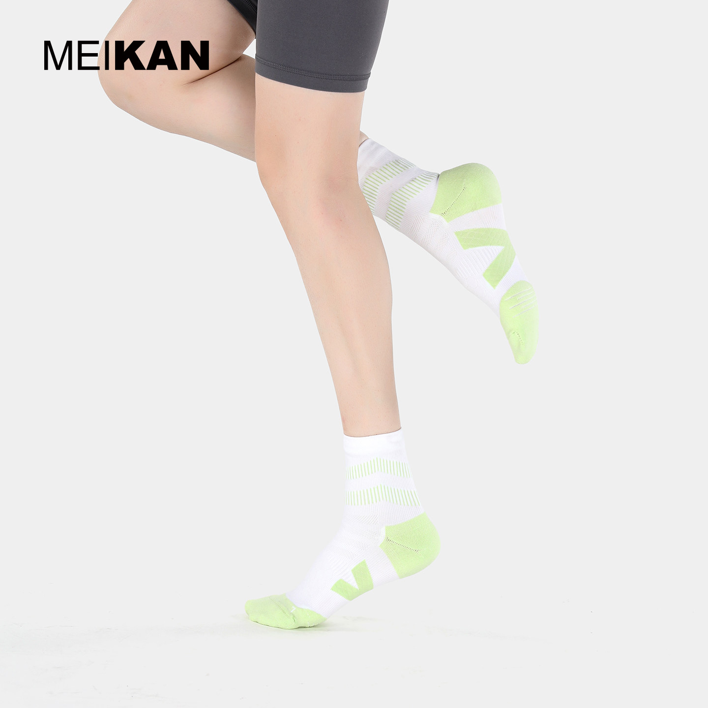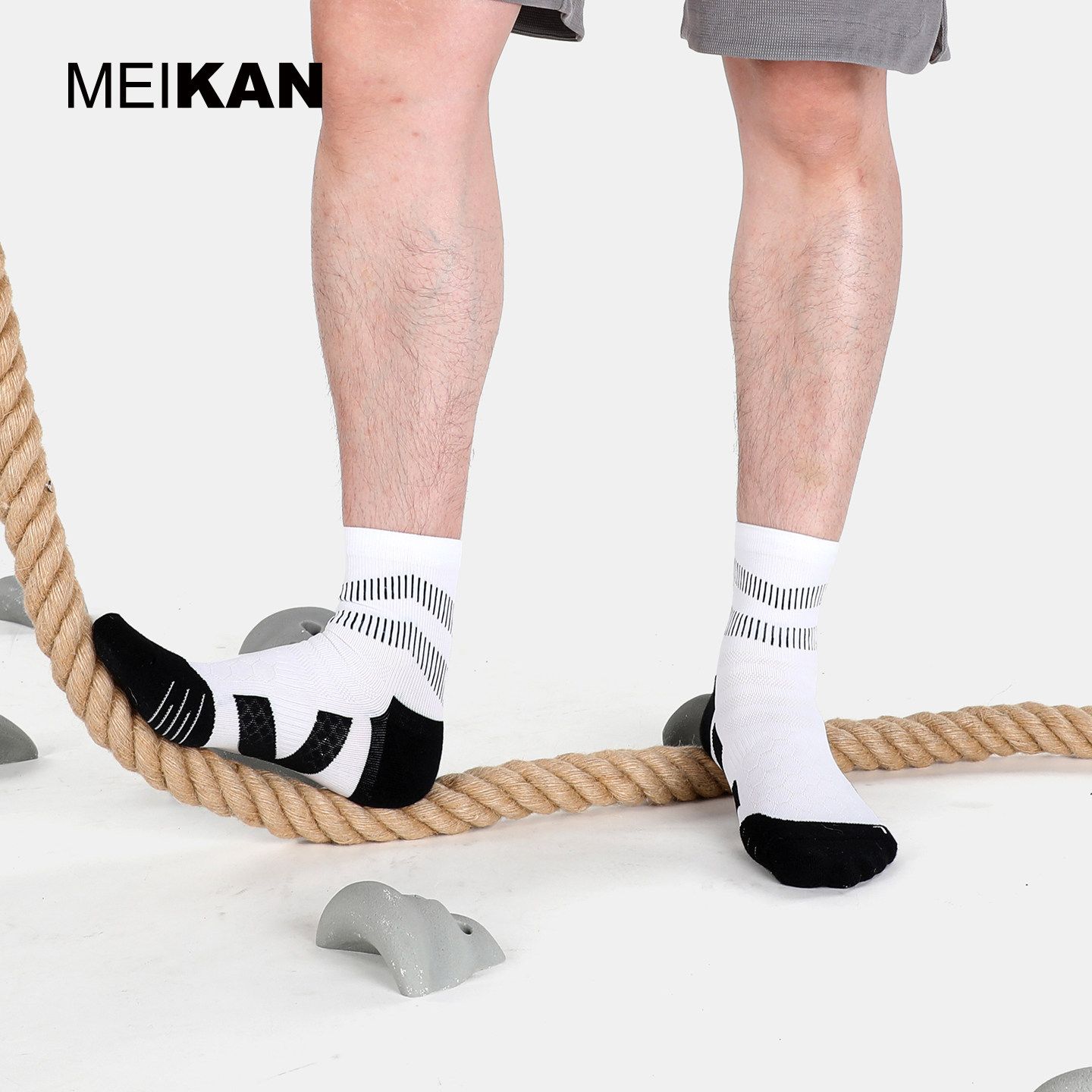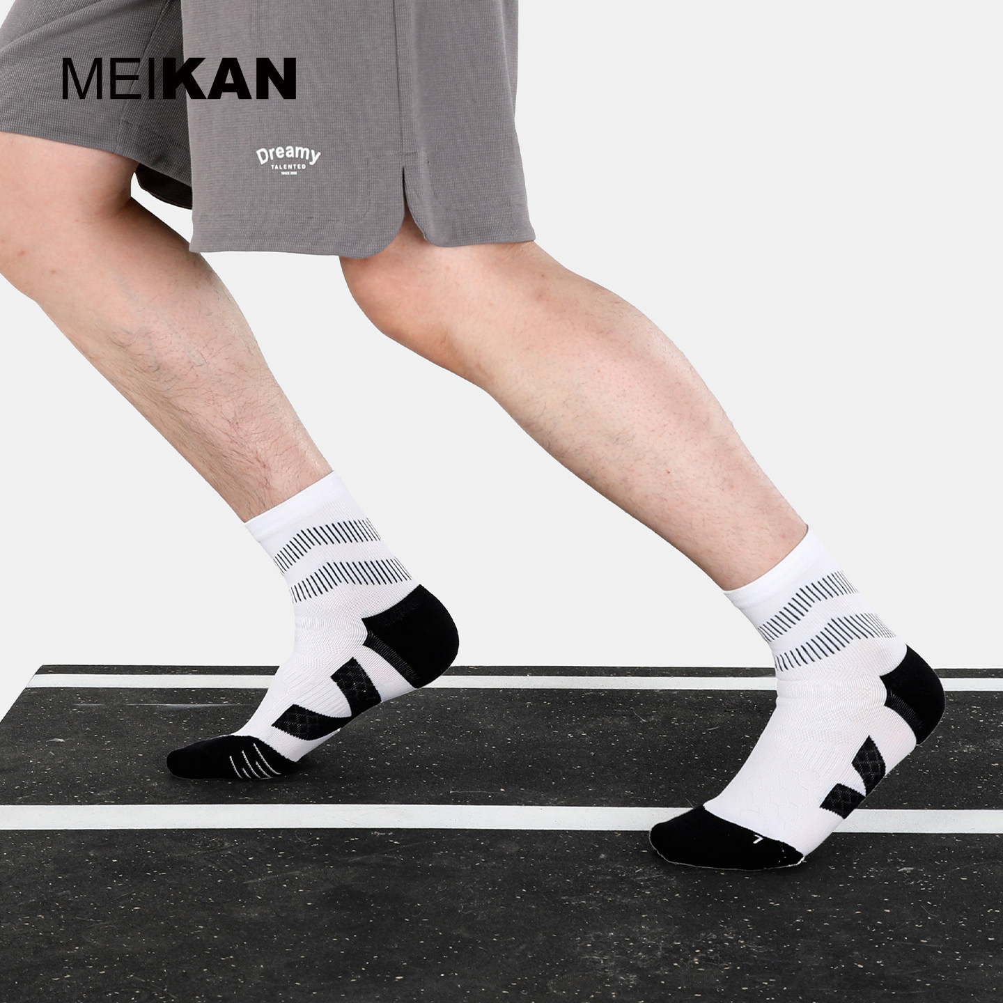 MEIKAN袜子男士秋冬中筒棉白色毛巾底袜长筒马拉松袜运动短袜黑色