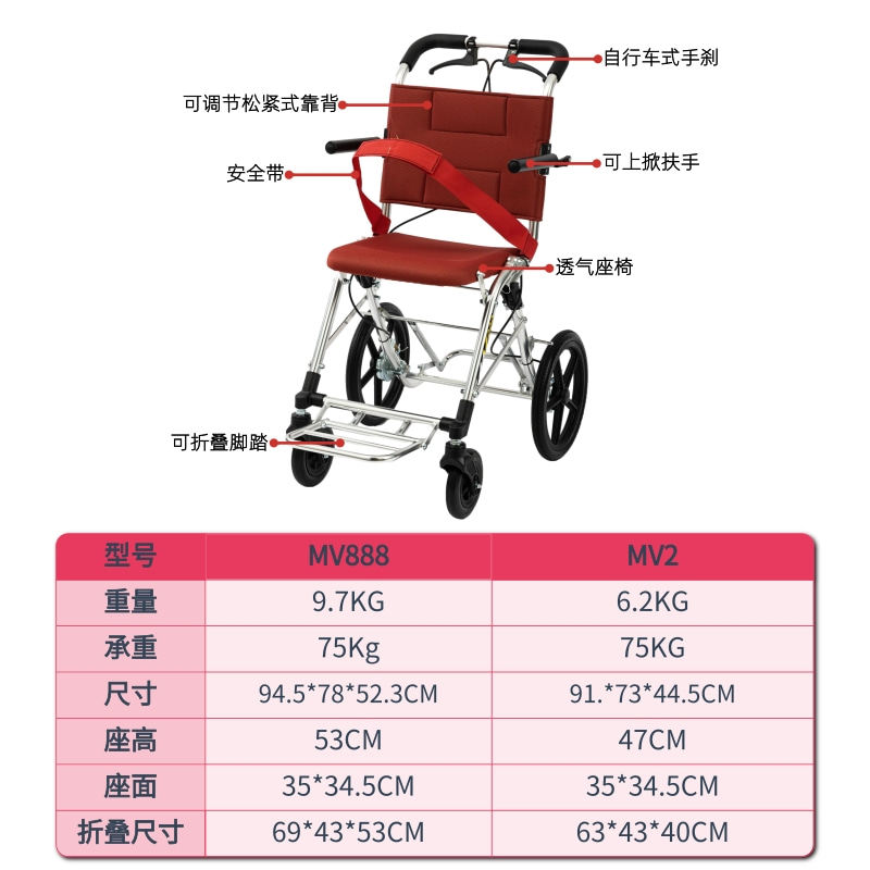 日本松永便携式轮椅老人旅行手推车小巧超轻可折叠上飞机铝合金