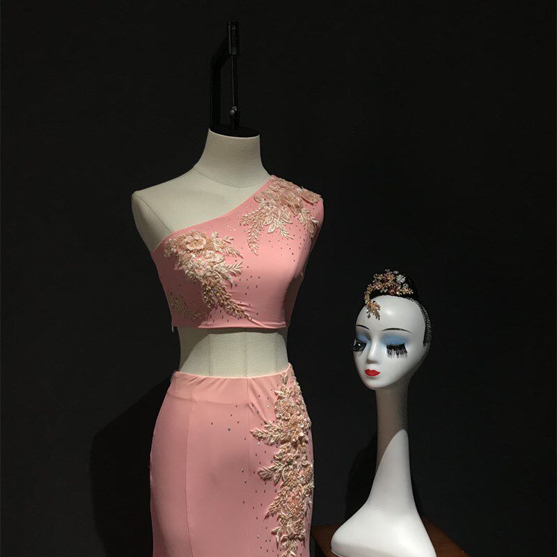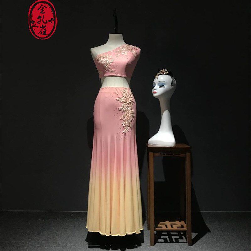 新品傣族舞蹈演出服装新款艺考孔雀舞修I身包臀鱼尾裙成人练功服