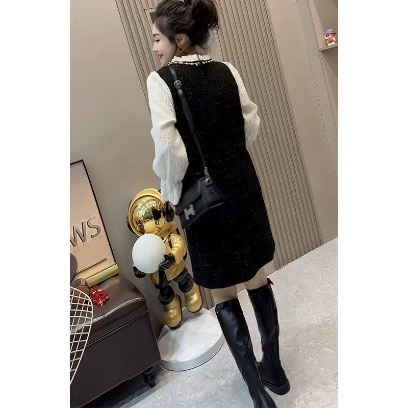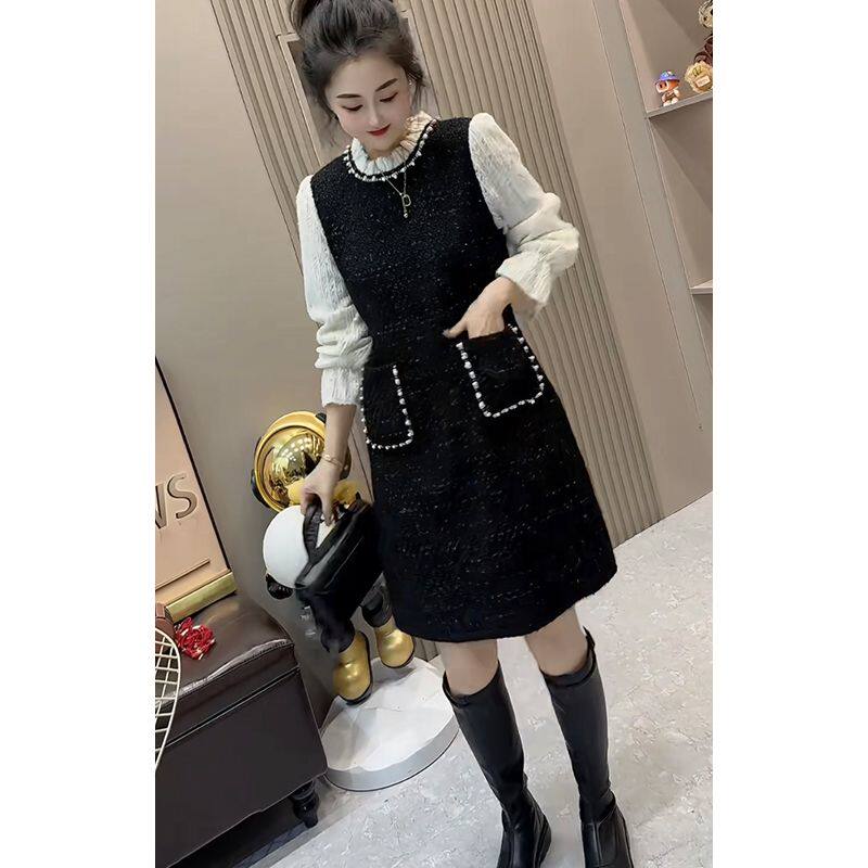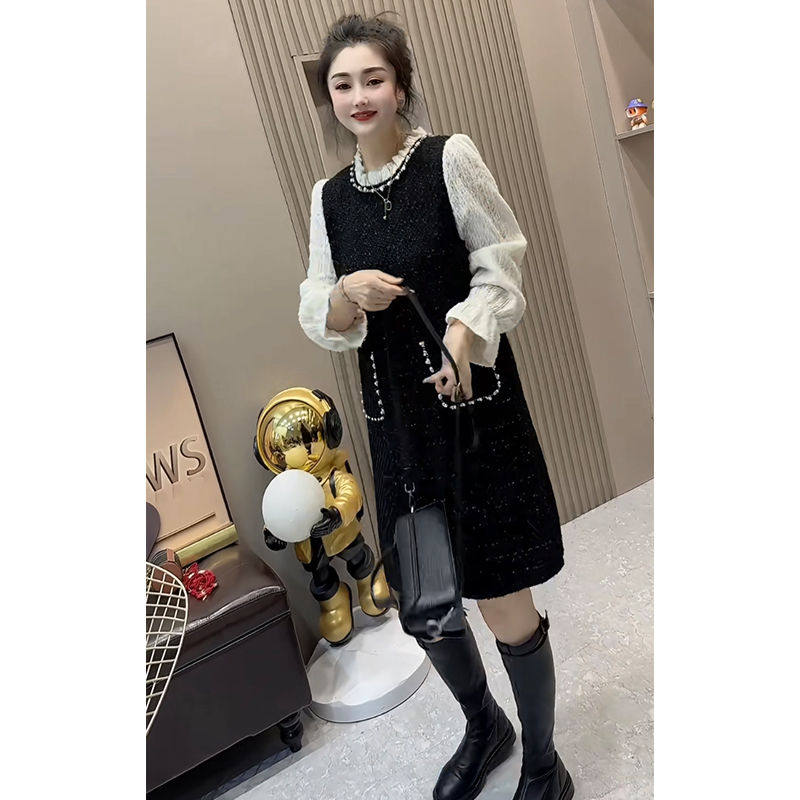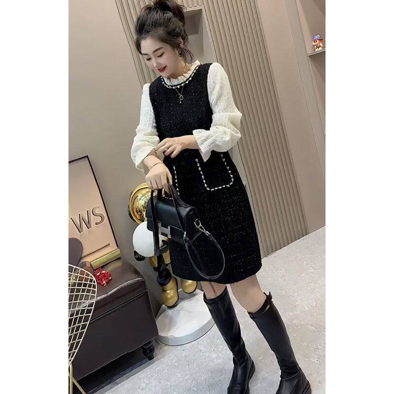 小香风连衣裙女2025年冬季新款时尚小个子法式气质长袖假两件裙子