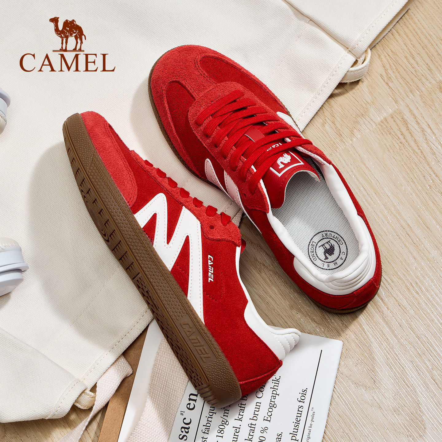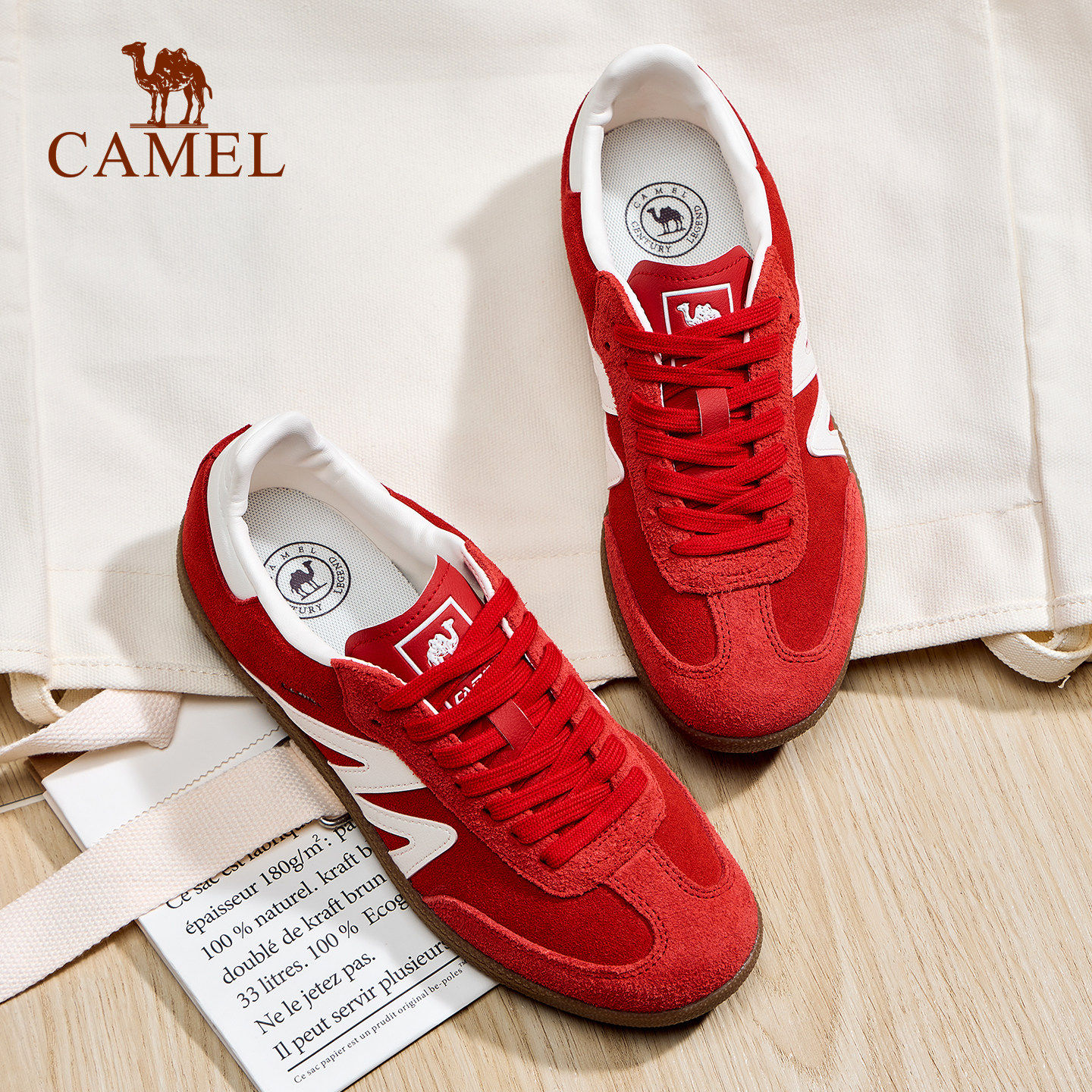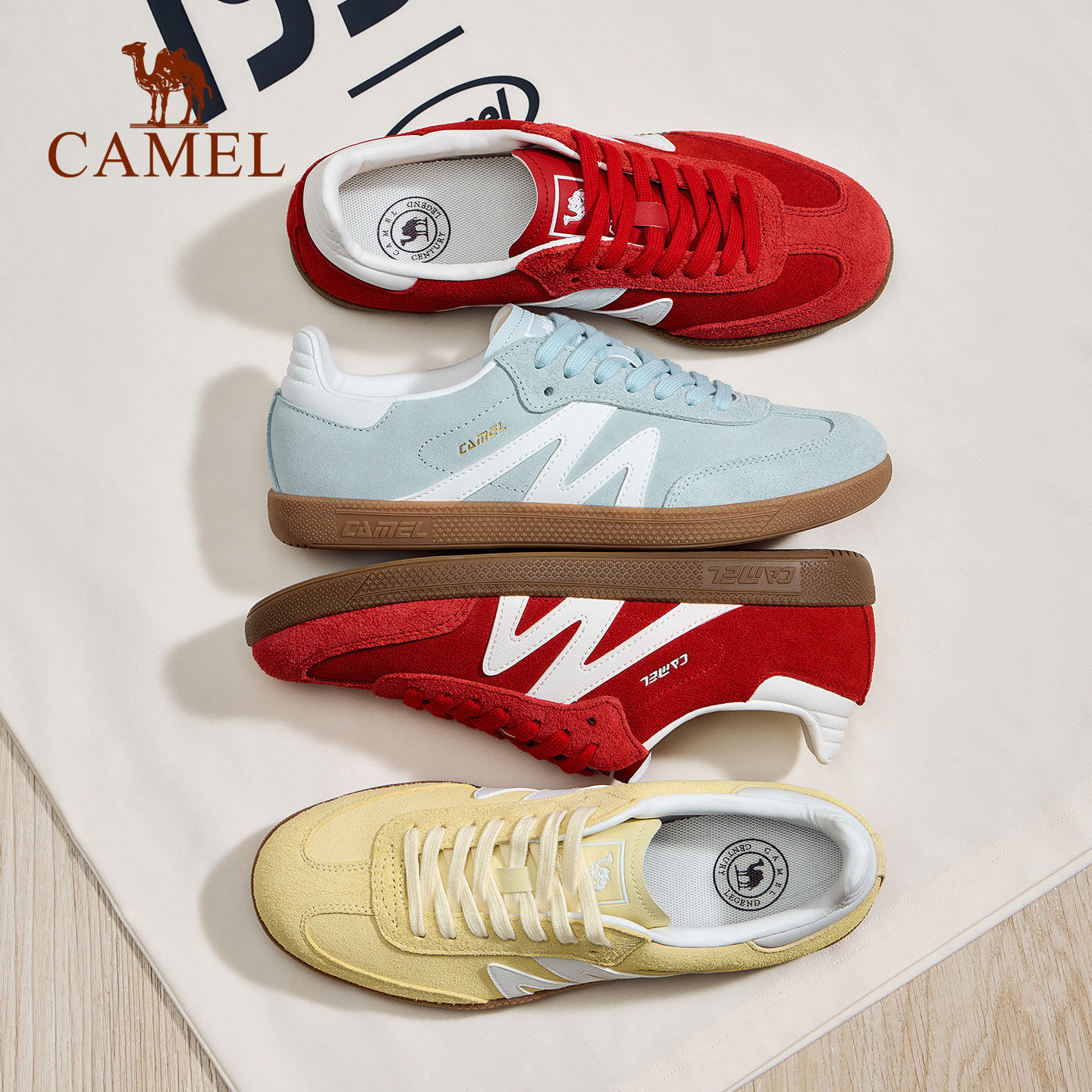 骆驼板鞋女款新款平底小白鞋时尚复古休闲鞋T头鞋百搭德训鞋女鞋