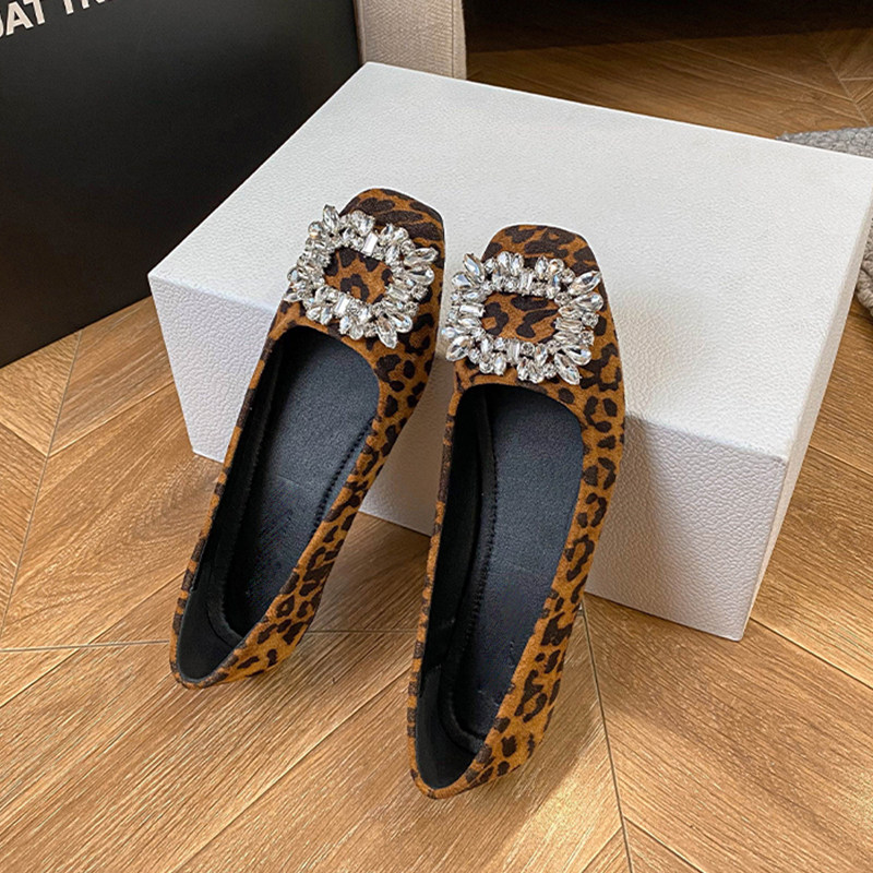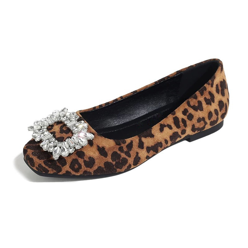 小码313233平底单鞋豹纹水钻方扣浅口女鞋大码41小个子玛丽珍鞋43