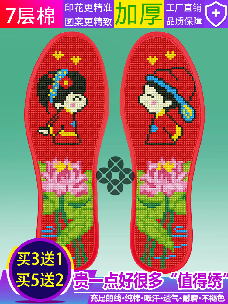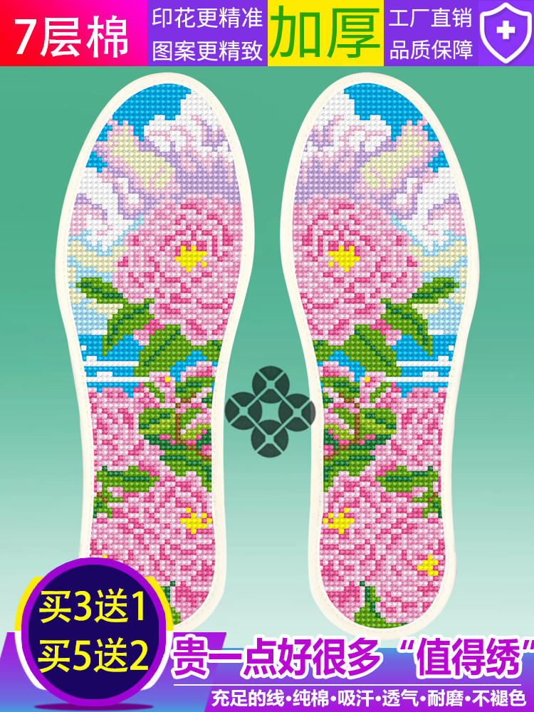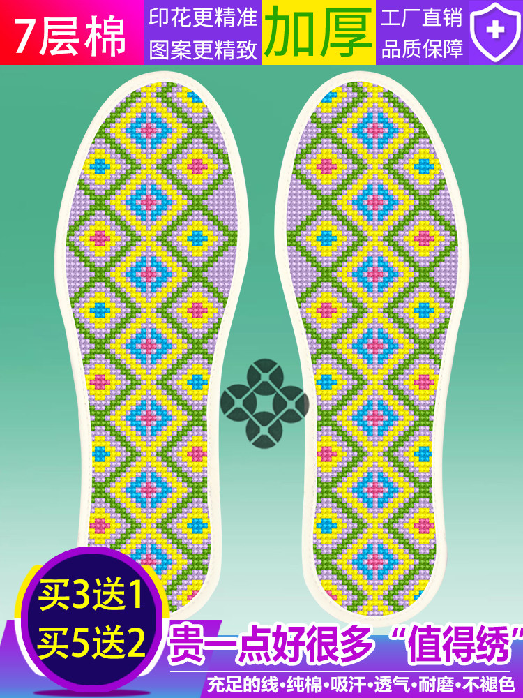 十字绣鞋垫七层棉【中格】半成品新款鞋垫男女透气手工印花针孔吸