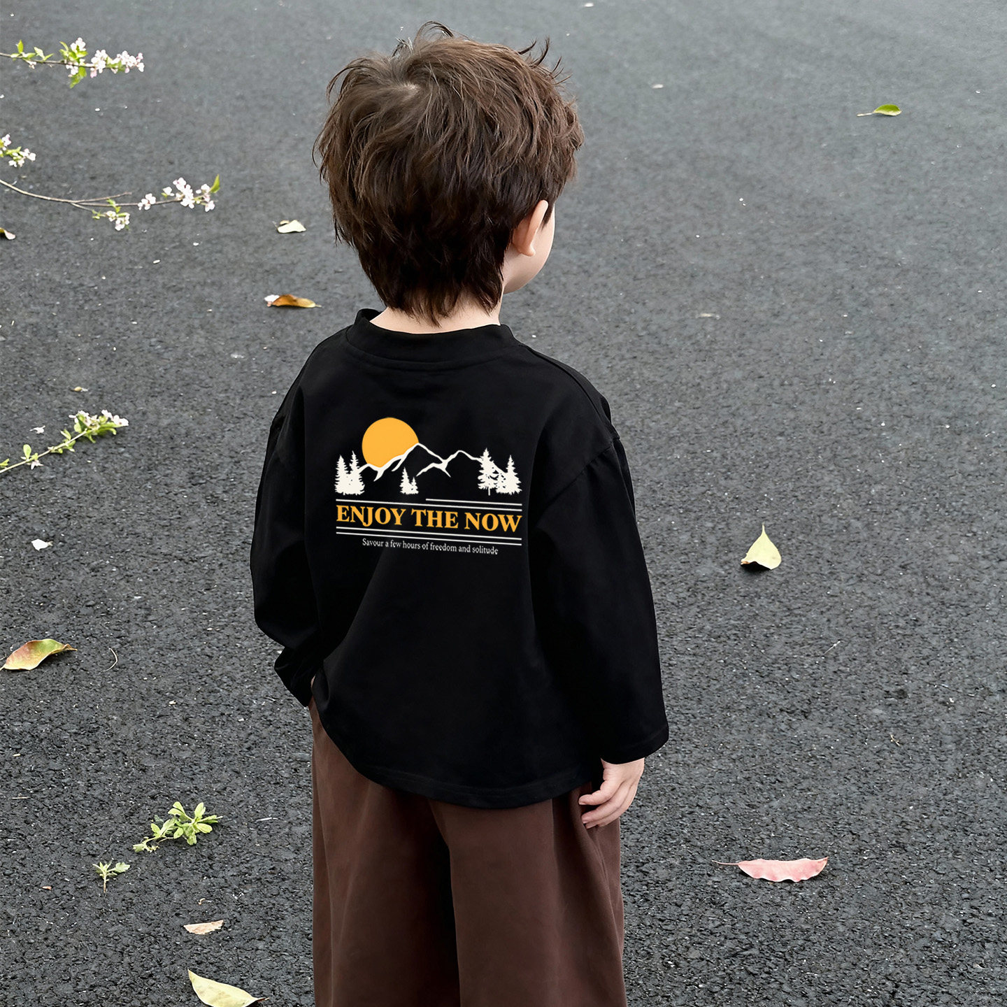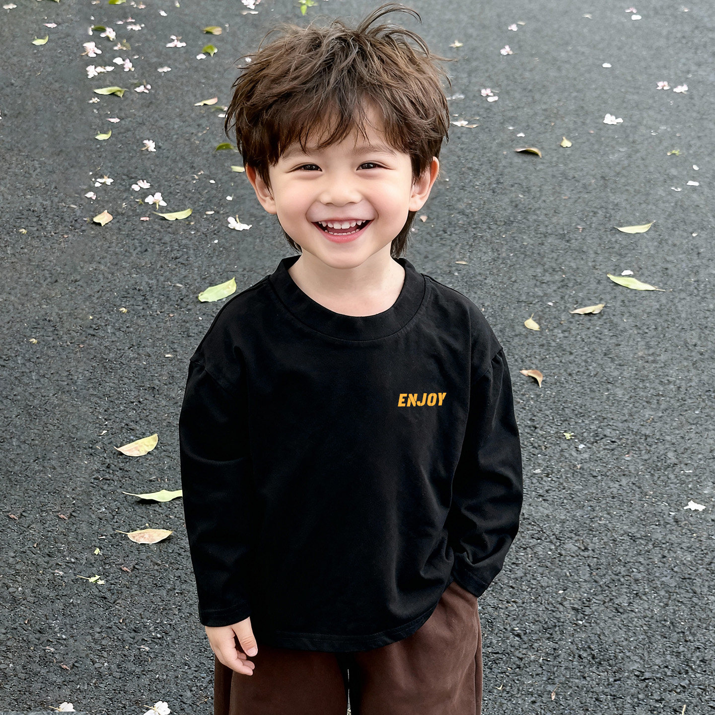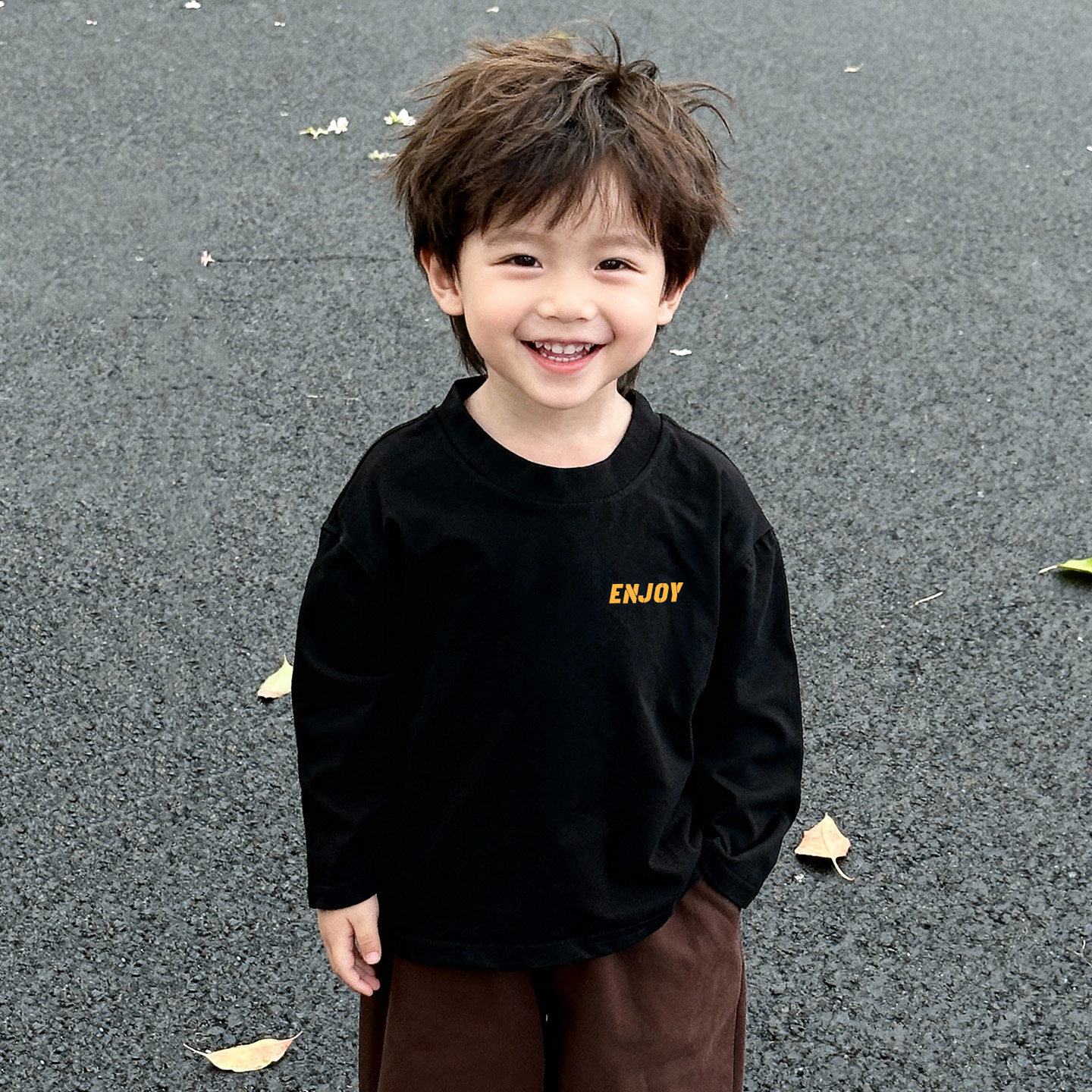 男童长袖t恤宽松韩版纯棉黑色小朋友港风复古痞帅风春秋款潮上衣
