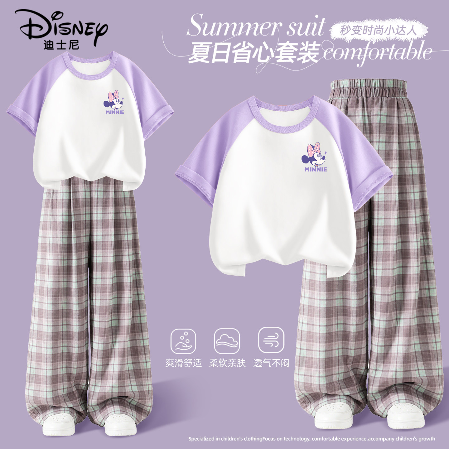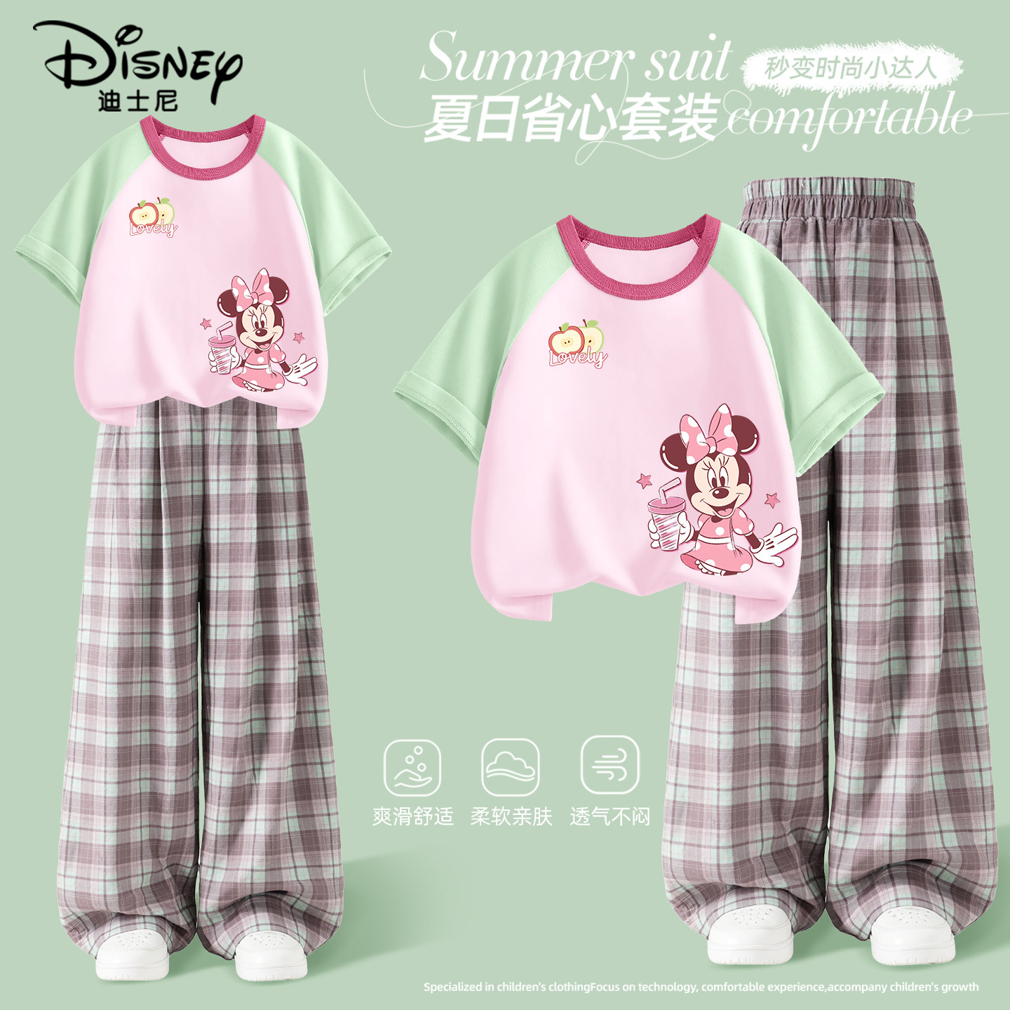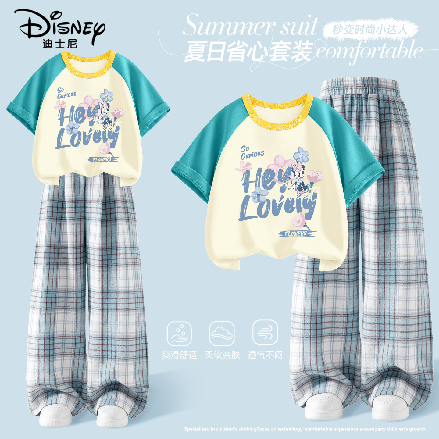 迪士尼女童套装夏薄款2026新款夏季薄款运动服女孩短袖儿童夏装女