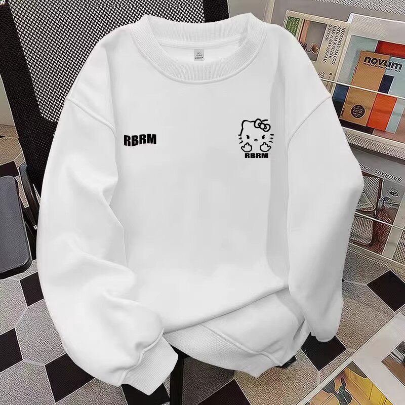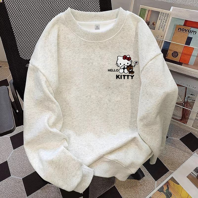 纯棉女童卫衣新款春秋冬季圆领KT猫美式学生风宽松加厚打底衫上衣