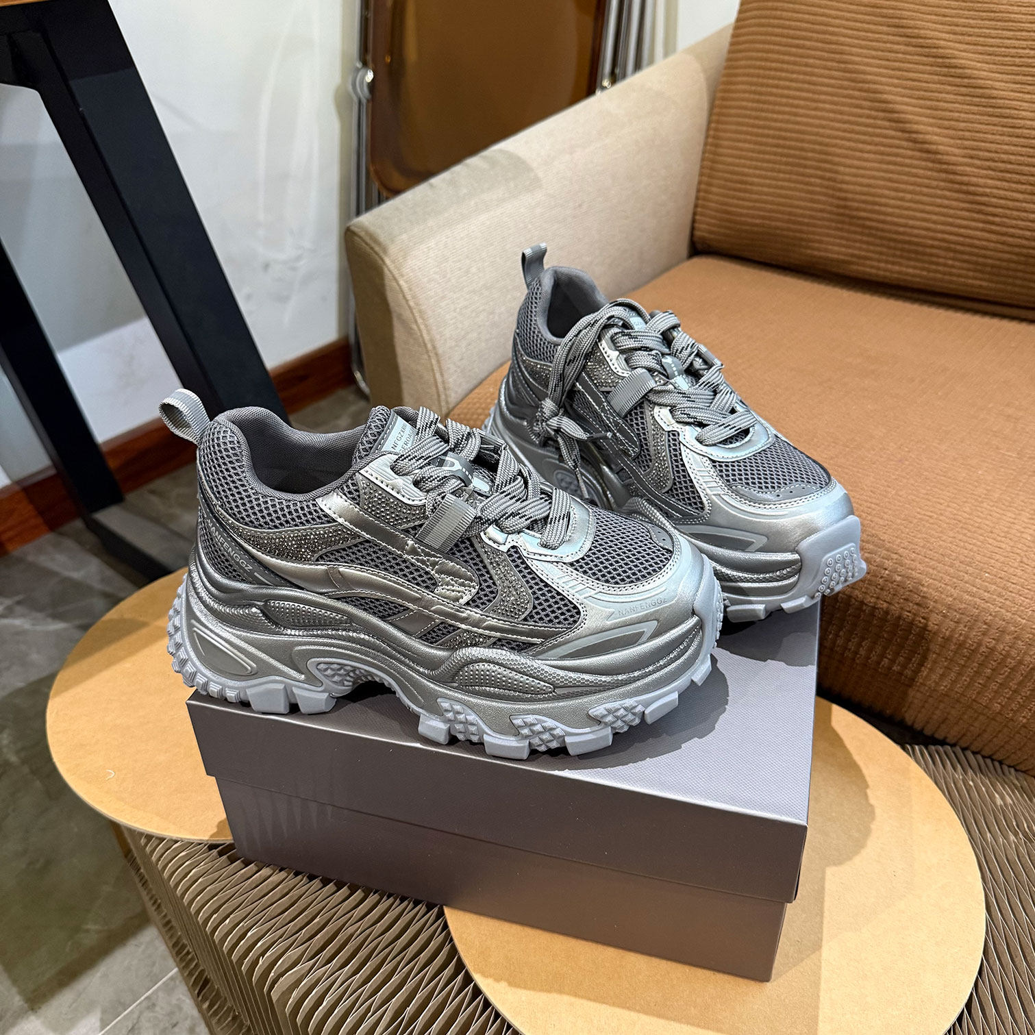 老爹鞋女款2026新款99-59厚底水钻女鞋巨好看今年流行爆款运动鞋