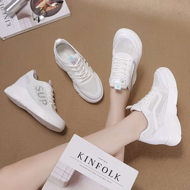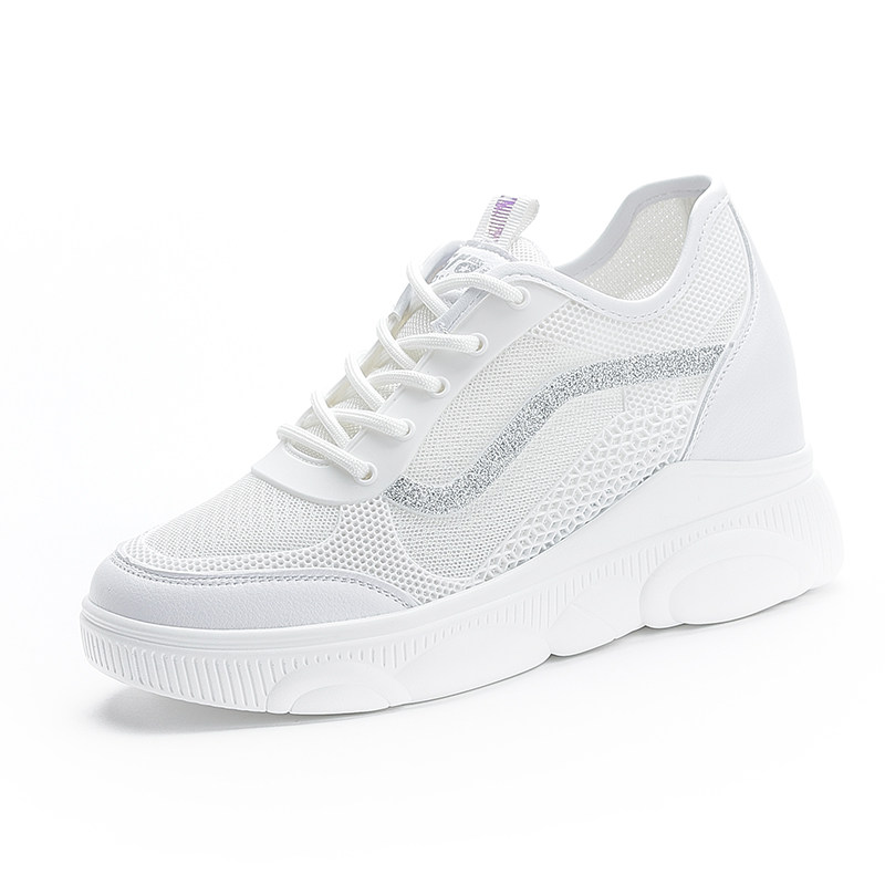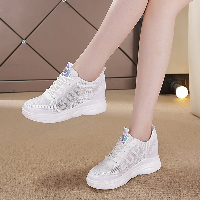 夏季网面运动鞋女2025新款网纱内增高小白鞋镂空透气白色休闲网鞋