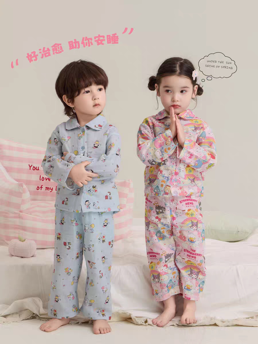 软糯透气~A类纯棉纱布宝宝家居服睡衣 春夏男女童卡通家儿童套装
