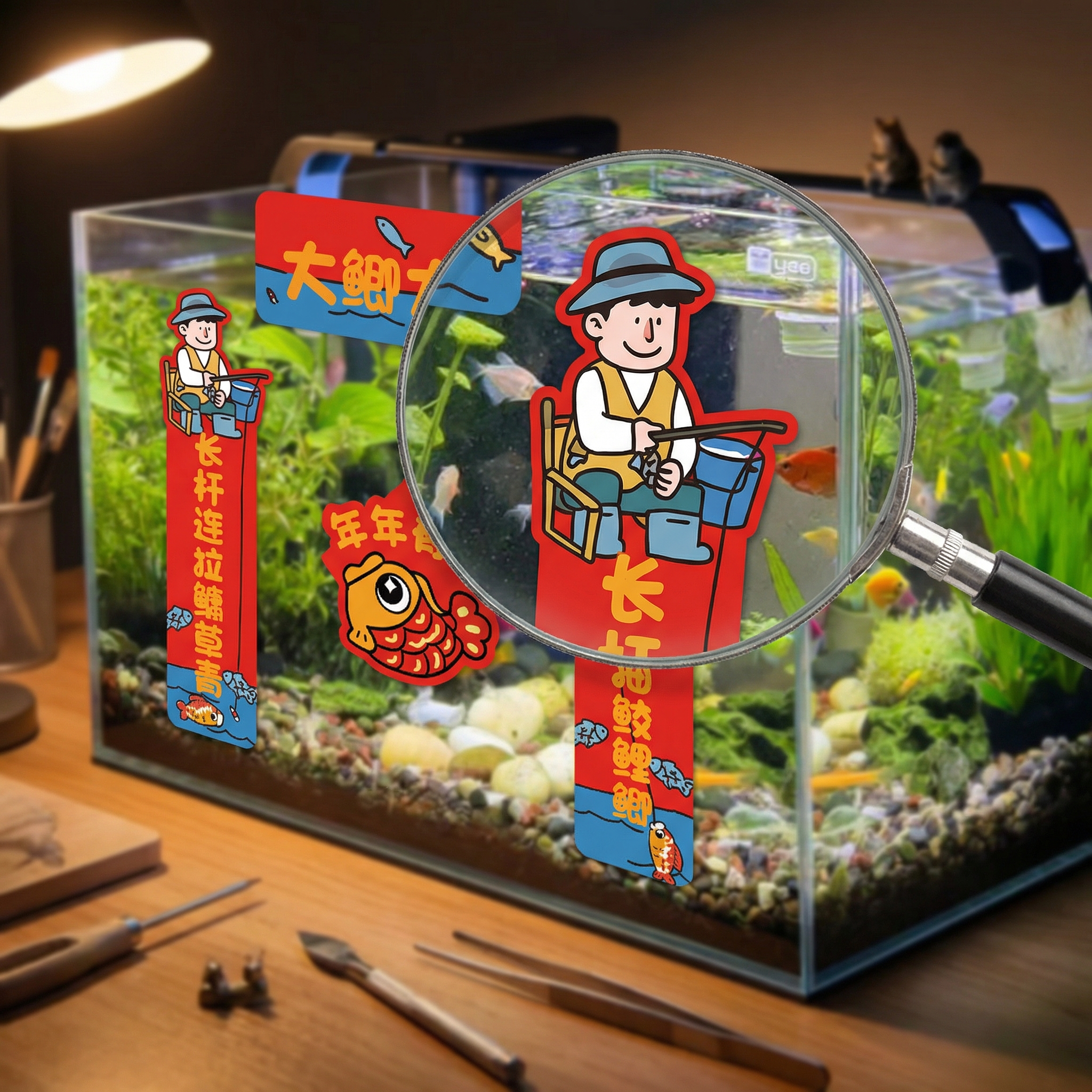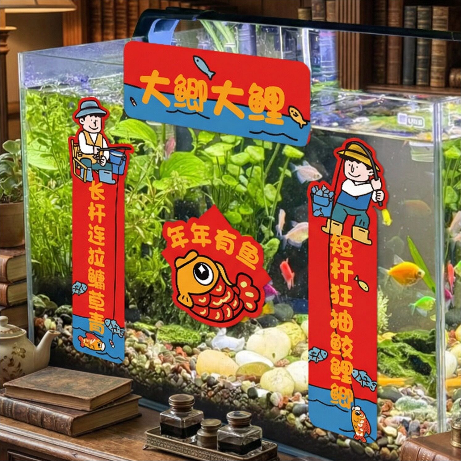 年新款钓鱼佬对联春联马年汽车贴纸个性创意搞笑可爱装饰贴画年货