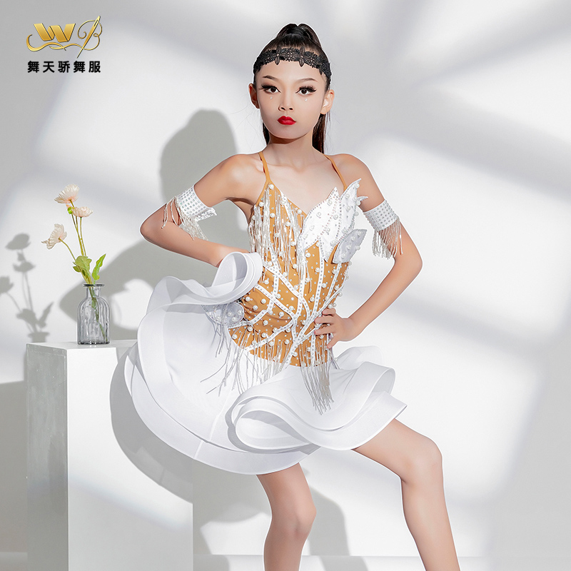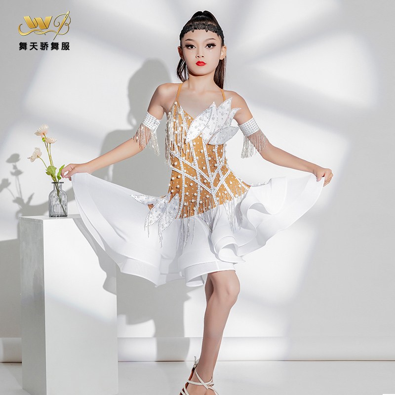 拉丁舞服高级感表演服女童拉丁比赛服高档花服专业儿童舞蹈演出服