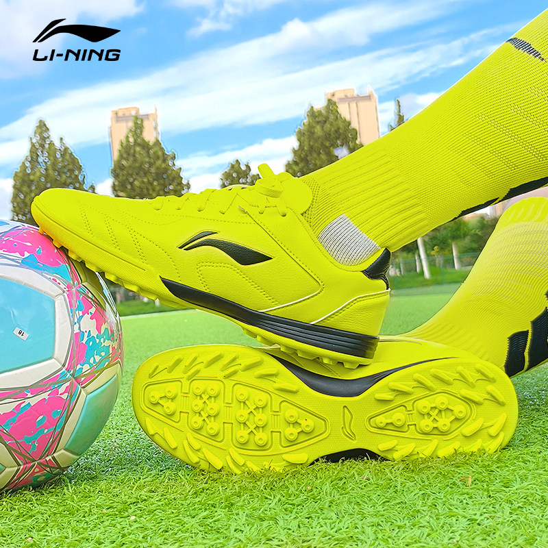 李宁足球鞋儿童正品男款训练TF碎钉小学生男童专用黑色低帮运动鞋