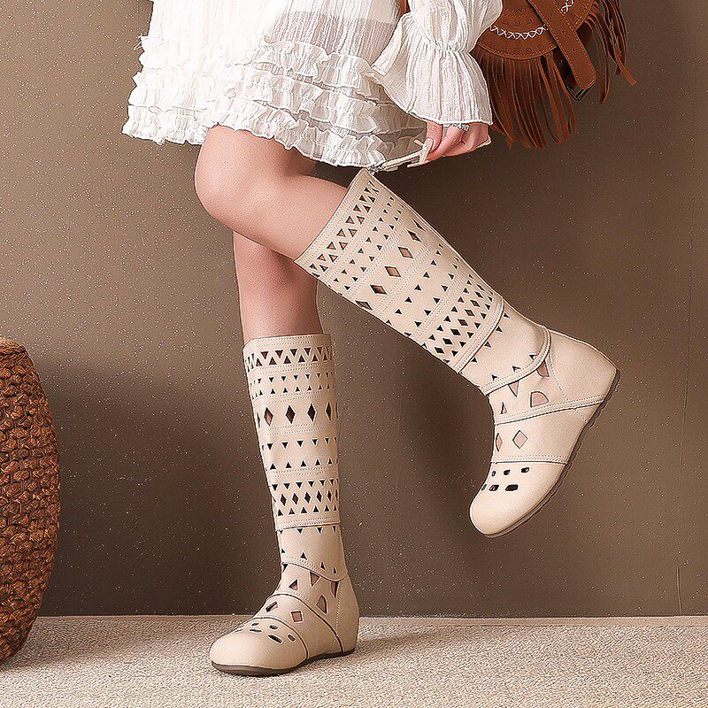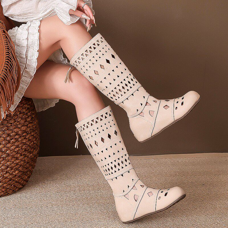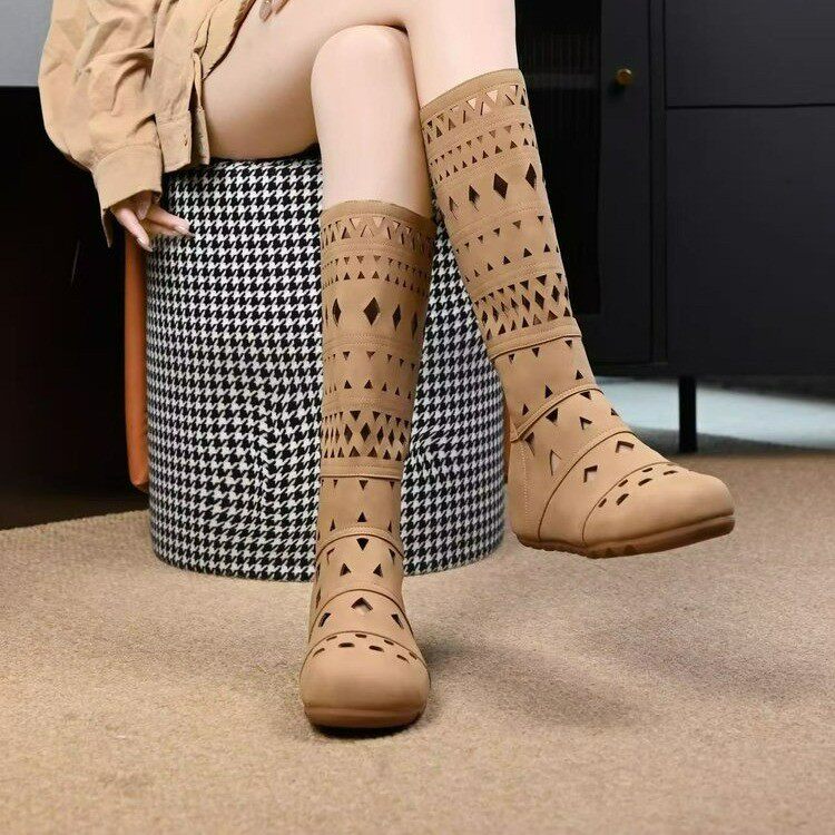 2026春季新款显瘦内增高女夏季简约复古百搭镂空透气凉靴长筒靴子